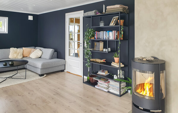 Så snart du kommer in i semesterhuset kommer du att hälsas av den eleganta interiören. Ljusa, vänliga rum med stora fönster skapar en mysig atmosfär och släpper in mycket naturligt ljus. Det moderna köket är fullt utrustat och inbjuder till matlagning tillsammans. I det mysiga vardagsrummet kan du njuta av avkopplande kvällar framför den vedeldade kaminen, medan matplatsen med sitt stora bord erbjuder utrymme för gemytliga måltider. Sovrummen utstrålar lugn och komfort med sin enkla elegans, perfekt för vilsamma nätter.