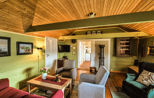 Njut av avkopplande dagar i detta mysiga hus, som väntar på dig på en fjordfastighet med en strand. Förbered en utsökt frukost i köket på morgonen och gör planer för den kommande dagen. Efter äventyren kan ni sätta er tillrätta i de mysiga sittmöblerna och njuta av avkopplande kvällar vid den sprakande vedspisen.