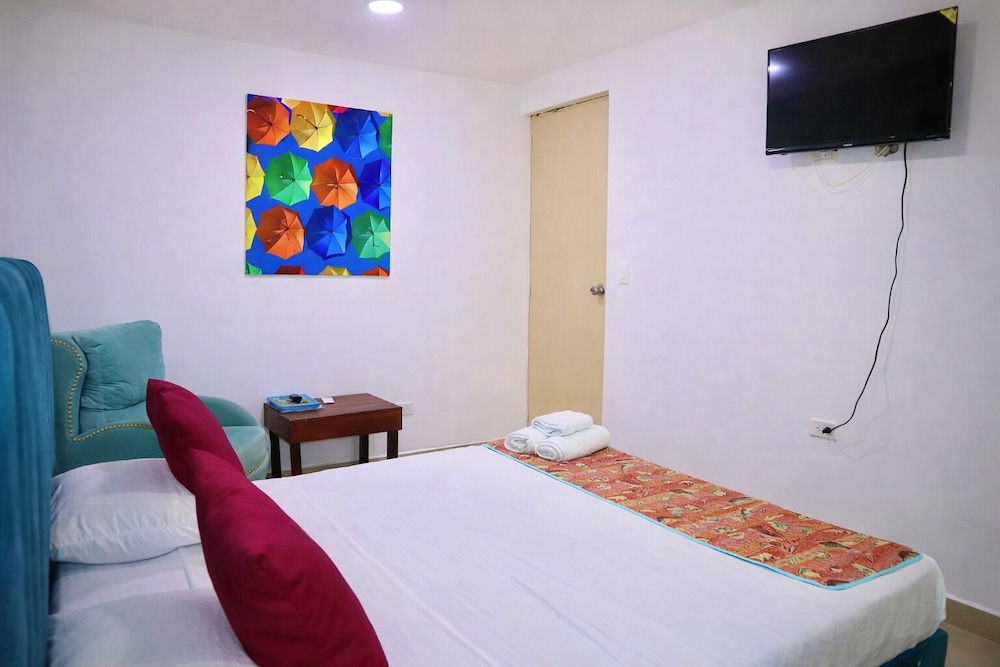 Open Sea Hotel Cartagena - Frente al mar ligger i Cartagena (i området La Boquilla), en kvarts bilfärd från både Klocktorn och Cartagena de Indias konferenscenter. Detta hotell ligger 9,8 km från Bocagrande-stranden och 0,1 km från La Boquilla-stranden. Känn dig som hemma i ett av de 18 luftkonditionerade rummen med LED-tv. Gratis wi-fi gör att du kan hålla dig uppkopplad, och satellit-tv erbjuder underhållning. Badrummen har dusch med regndusch. Städning erbjuds dagligen och strykutrustning finns på begäran. Avstånd avrundas till närmsta decimal.