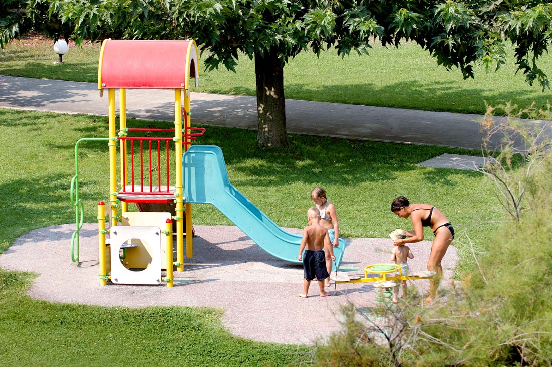 Du bor på bästa läge, nära den långgrunda sandstranden som du når via en grusväg. Hotellet har ett fint poolområde med stor barnpool, stora gräsmattor och lekplats. Vidare finns boulebana, bordtennisbord, ett kombinerat spel/tv-rum samt en multisportbana för exempelvis volleyboll eller badminton. En liten bar/cafeteria öppnar under juli och augusti. Under juli och augusti erbjuds underhållning en kväll i veckan. Kassafack finns att hyra i receptionen för € 10/vecka. Trådlöst internet .