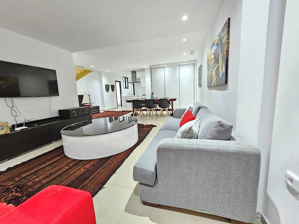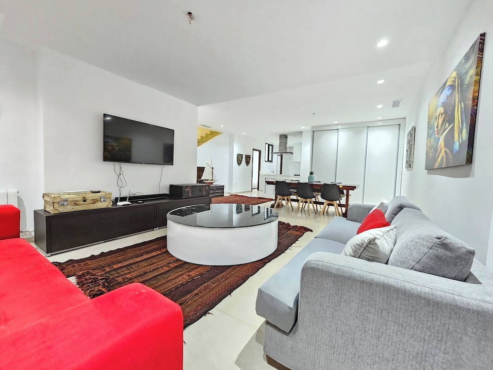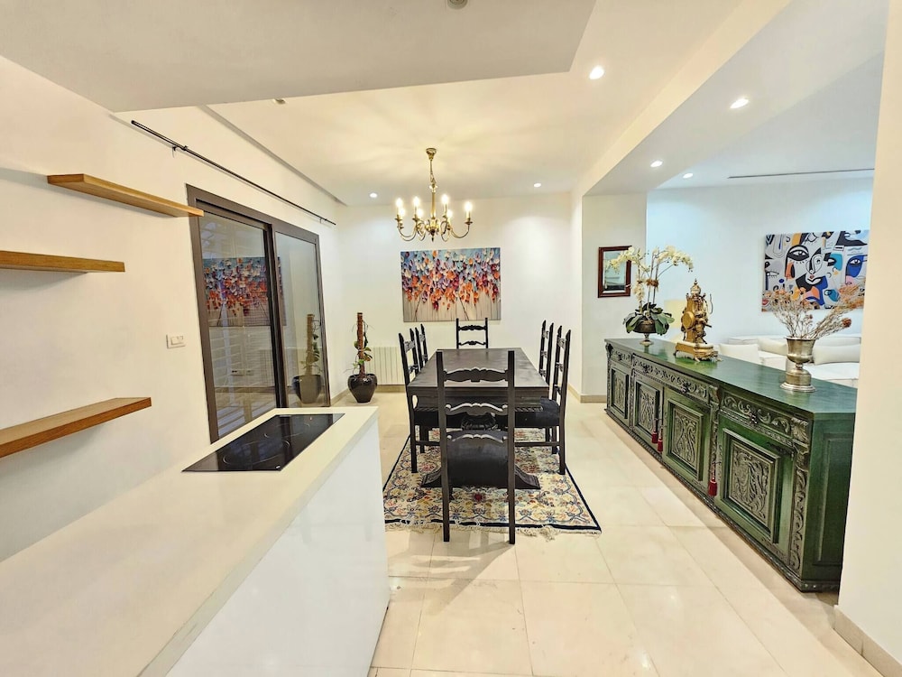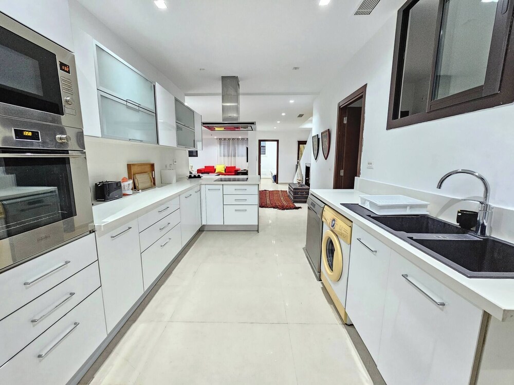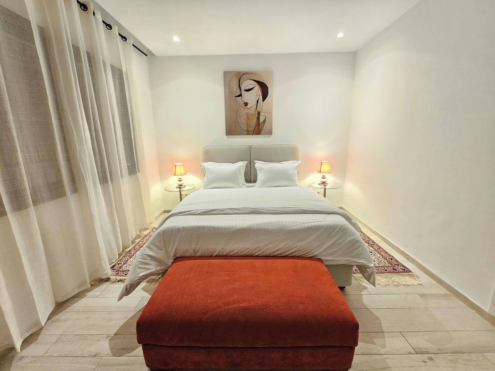 Denna villa ligger i La Marsa (i området Sidi Daoud), en kvarts bilfärd från både Plage de La Goulette och Avenue Habib Bourguiba. Denna villa ligger 1,3 km från Romerska amfiteatern i Karthago och 2,1 km från Cisternerna i La Malga. Känn dig som hemma i den luftkonditionerade villan. Avstånd avrundas till närmsta decimal.