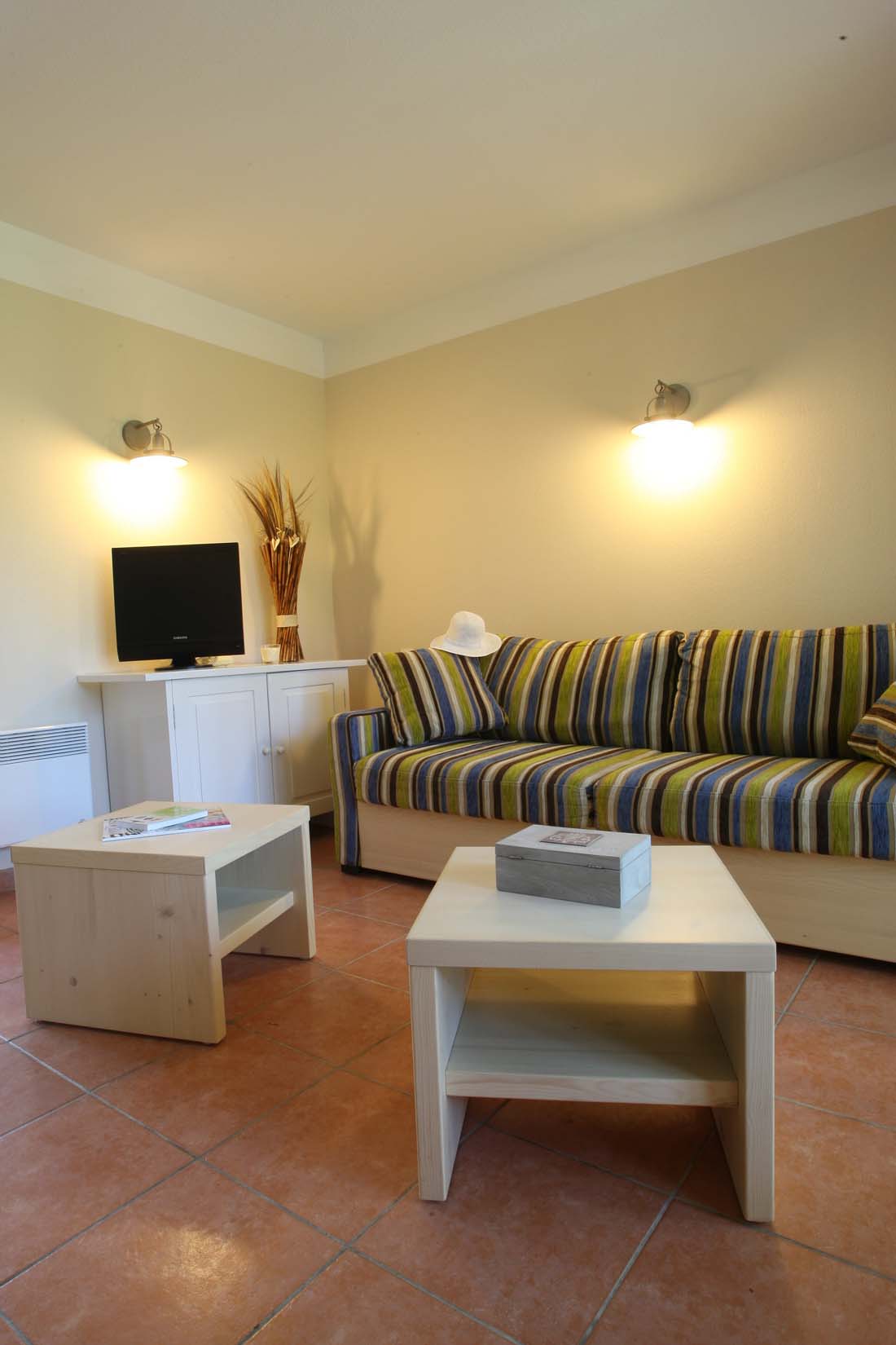 Lägenheter eller hus med plats för 8 personer. Lägenheterna ligger i hus med 2 till 3 våningar och har terrass eller balkong. Fräscha lägenheter med klinker eller parkett