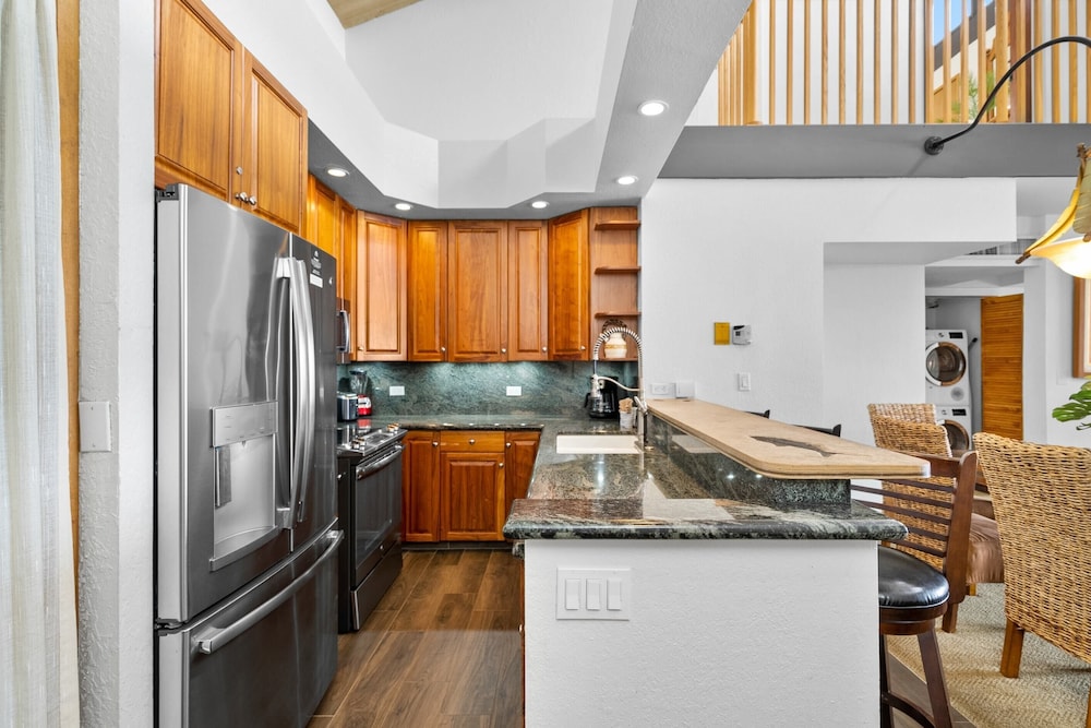 Denna lägenhet ligger i Kaanapali på stranden, en tio minuters bilfärd från både Kaanapali Beach och Whalers by. Denna lägenhet ligger 7 km från Napili Bay och 0,5 km från Keka'a Beach. Slå dig till ro i den här luftkonditionerade lägenheten, som har ett kylskåp och en ugn i köket. Det finns en privat balkong. En 55-tums smart-tv med digitalkanaler ingår. Bekvämligheter som ingår är kaffe- och tebryggare och tvättmaskin/torktumlare. Du kan också be om att få gratis spjälsäng. Avstånd avrundas till närmsta decimal.