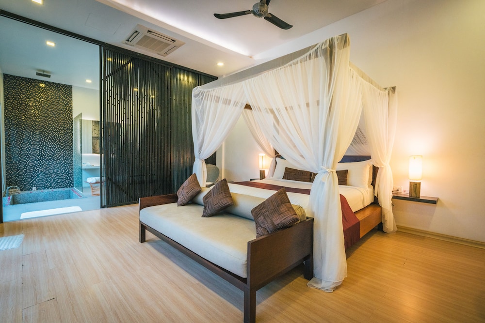 La Villa Langkawi - Private Pool ligger i Langkawi nära stranden, en fem minuters bilfärd från både Cenang Beach och Pantai Tengah Beach. Detta hotell ligger 1,9 km från Cenang shoppingcenter och 2,3 km från Tengahs strand. Känn dig som hemma i ett av de 12 luftkonditionerade rummen med gratis produkter i minibar och espressobryggare. Gratis wi-fi gör att du kan hålla dig uppkopplad, och satellit-tv erbjuder underhållning. Badrummen har gratis toalettartiklar och bidéer. På rummet finns laptopanpassade värdeförvaringsskåp, takfläkt och telefon med gratis lokalsamtal. Avstånd avrundas till närmsta decimal.