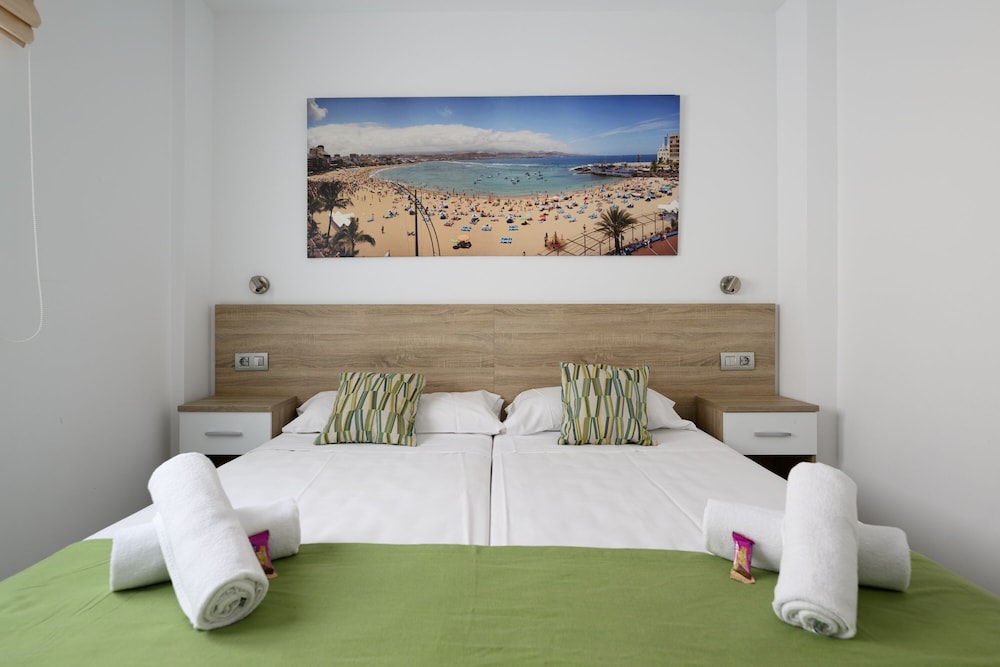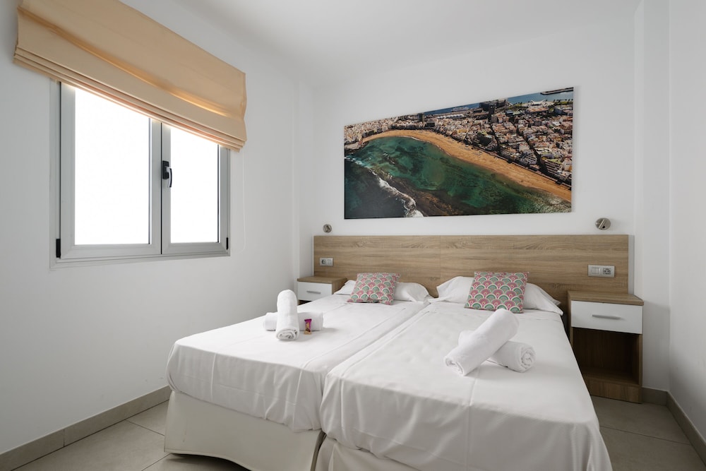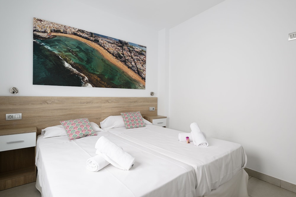 Canteras Suites ligger i Las Palmas de Gran Canaria på stranden, ett stenkast från Playa de las Canteras och en 12 minuters promenad från Santa Catalina-parken. Detta hotell vid stranden ligger 2,9 km från Las Palmas hamn och 1,2 km från Museo Nacional de Ciencia y Tecnología. Känn dig som hemma i ett av de 12 luftkonditionerade rummen som har kök med kylskåp och ugn. Gratis wi-fi ser till att du kan hålla dig uppkopplad, och en 37-tums platt-tv med digitalkanaler erbjuder all underhållning du behöver. På rummet finns separata sittutrymmen och mikrovågsugnar. Städning erbjuds varje vecka. Avstånd avrundas till närmsta decimal.
