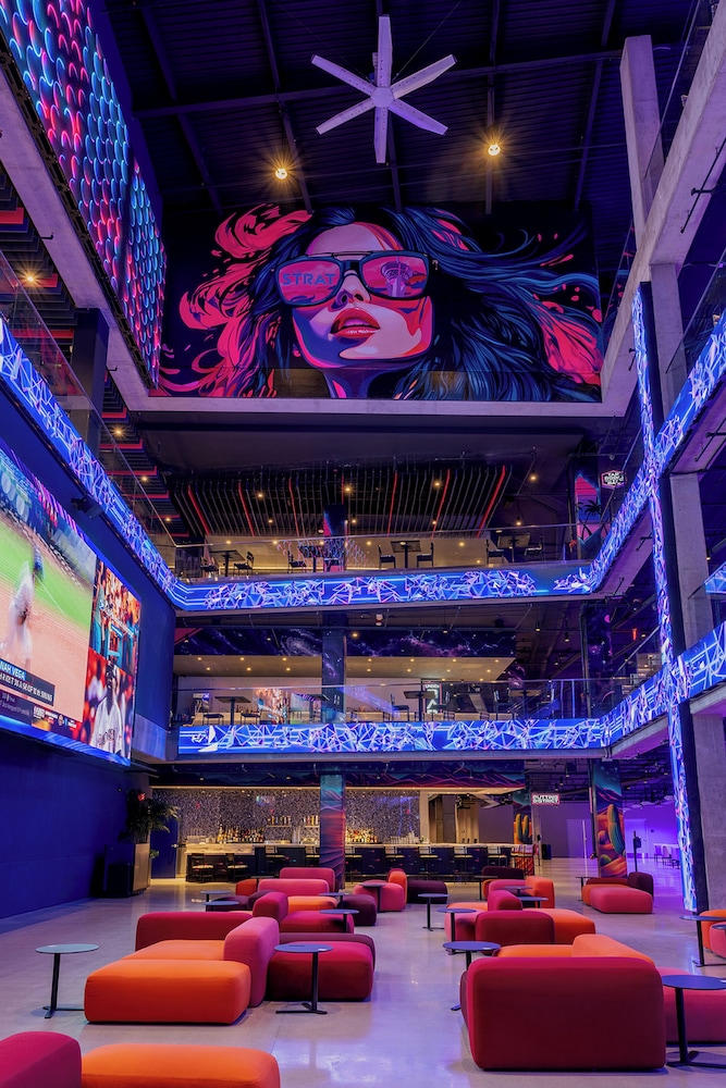 The STRAT Hotel, Casino & Tower ligger i Las Vegas (i området Las Vegas Strip), ett stenkast från Stratosphere Thrill Rides och 3 minuters promenad från Atomic Golf. Denna resort med kasino ligger 2,2 km från Las Vegas Convention Center och 2,2 km från Las Vegas North Premium Outlets. Känn dig som hemma i ett av de 2427 rummen med plasma-tv. Gratis wi-fi gör att du kan hålla dig uppkopplad, och kabel-tv erbjuder underhållning. På rummet finns telefon, skrivbord och mörkläggningsgardiner. Avstånd avrundas till närmsta decimal.
