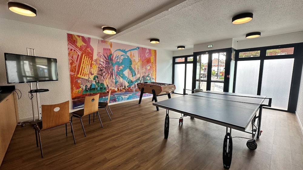Hotel Kyriad Le Bourget Centre-Parc des Expositions ligger centralt i Le Bourget, en tio minuters bilfärd från både Stade de France och Villepinte utställningscenter. Detta hotell ligger 12,2 km från Notre-Dame och 16,8 km från Opéra Garnier. Känn dig som hemma i ett av de 118 rummen med LCD-tv. Gratis wi-fi gör att du kan hålla dig uppkopplad, och satellit-tv erbjuder underhållning. Privat badrum med dusch, gratis toalettartiklar och hårtorkar. På rummet finns skrivbord och kaffe- och tebryggare. Städning erbjuds dagligen. Avstånd avrundas till närmsta decimal.
