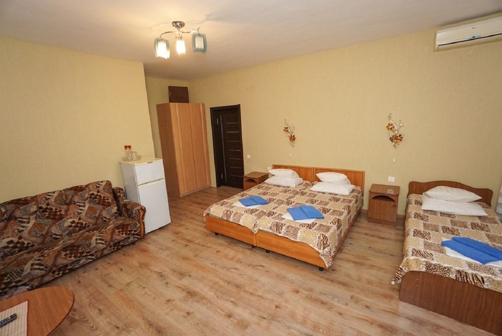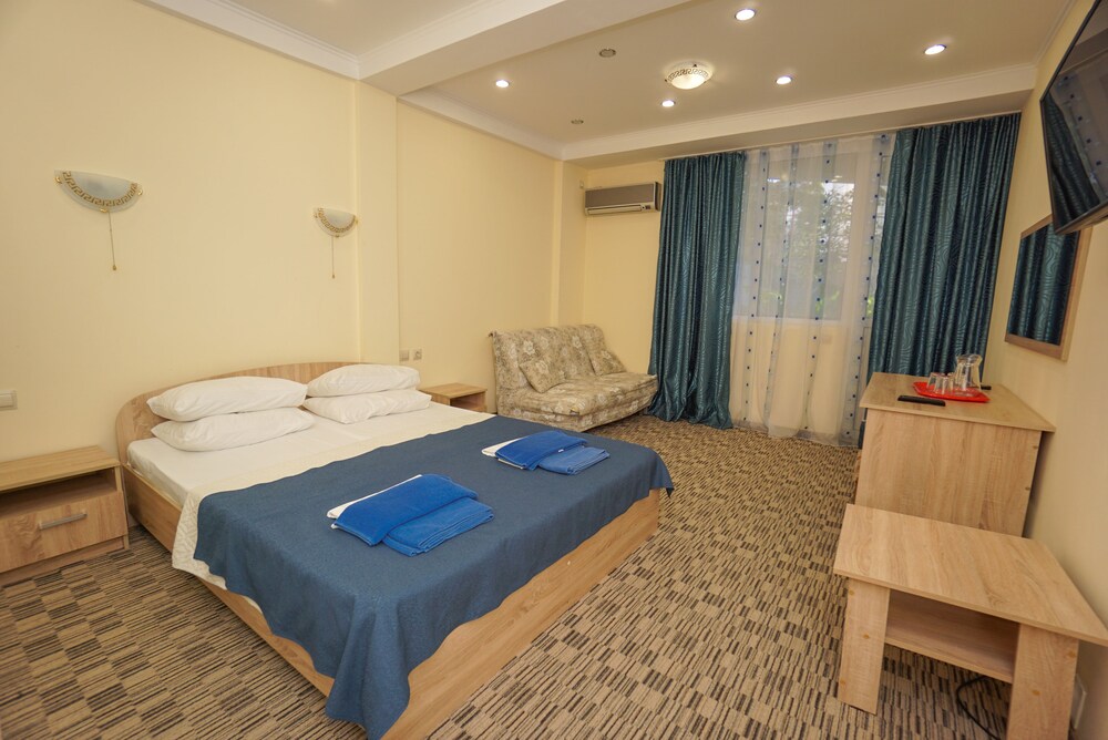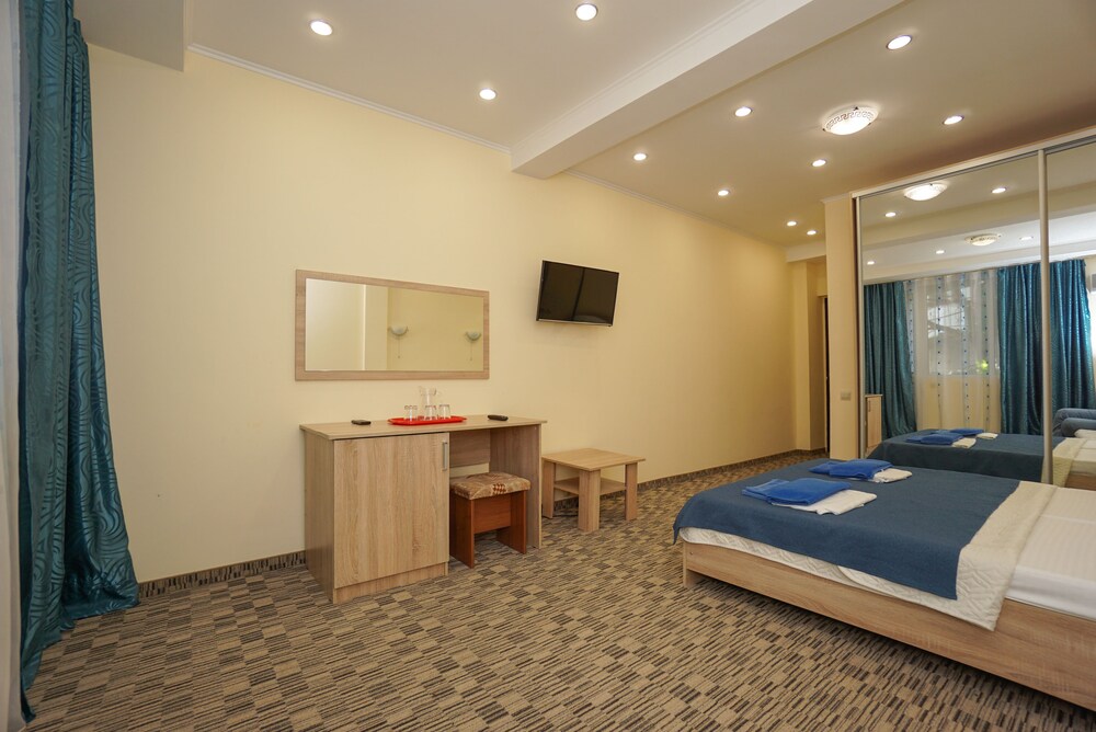 I Sotji hittar du Viamond Hotel 1 min med bil från Aqualoo vattenpark och 6 min från Loo-templet. Detta hotell ligger 10 km från Dagomys Beach och 21 km från MoreMall. Känn dig som hemma i ett av de 79 luftkonditionerade rummen med kylskåp och LED-tv. Gratis wi-fi gör att du kan hålla dig uppkopplad, och satellit-tv erbjuder underhållning. Privat badrum med dusch, gratis toalettartiklar och hårtorkar. Städning erbjuds dagligen och strykutrustning finns på begäran. Avstånd avrundas till närmsta decimal.