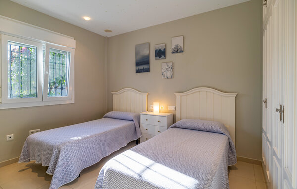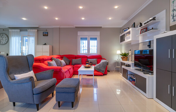 Detta smakfullt inredda, högkvalitativa semesterhus i Los Barrios är den perfekta tillflyktsorten för dem som söker avkoppling. De färgglada och vackra möblerna skapar en varm atmosfär, medan den vedeldade kaminen i vardagsrummet ger mysighet. På två våningar finns det gott om utrymme för att känna sig som hemma med familj eller vänner. Den rymliga verandan inbjuder till avkopplande timmar i skuggan, medan det inhägnade poolområdet med soldäck är den perfekta platsen för solbad och avkylning - en plats som gjord för avkoppling och välbefinnande.