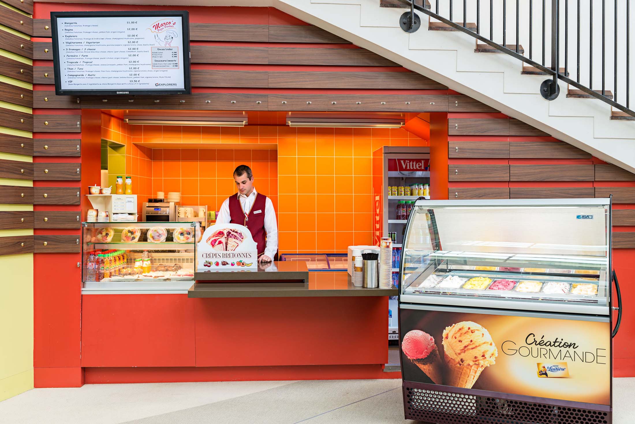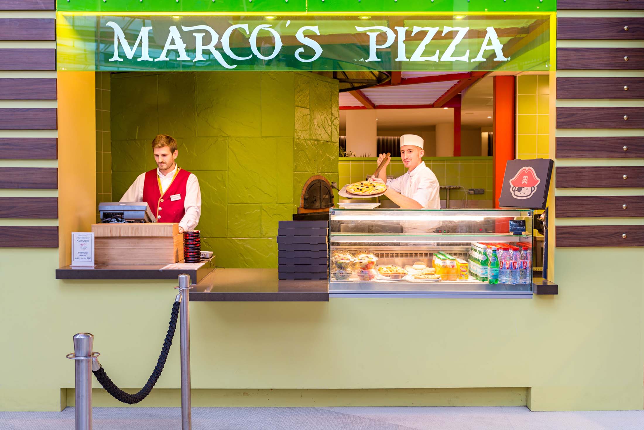 På hotellet finns 3 restauranger (buffé, à la carte samt pizzeria), en bar, ett stort lekrum med bollhav, spelrum och ett litet barngym. För de nyfikna yngre gästerna finns även en lekplats utomhus i form av ett piratskepp. Hotellet har även en spännande biograf med specialeffekter där du kan uppleva kortare filmer som aldrig förut (ca 5€/pers.).