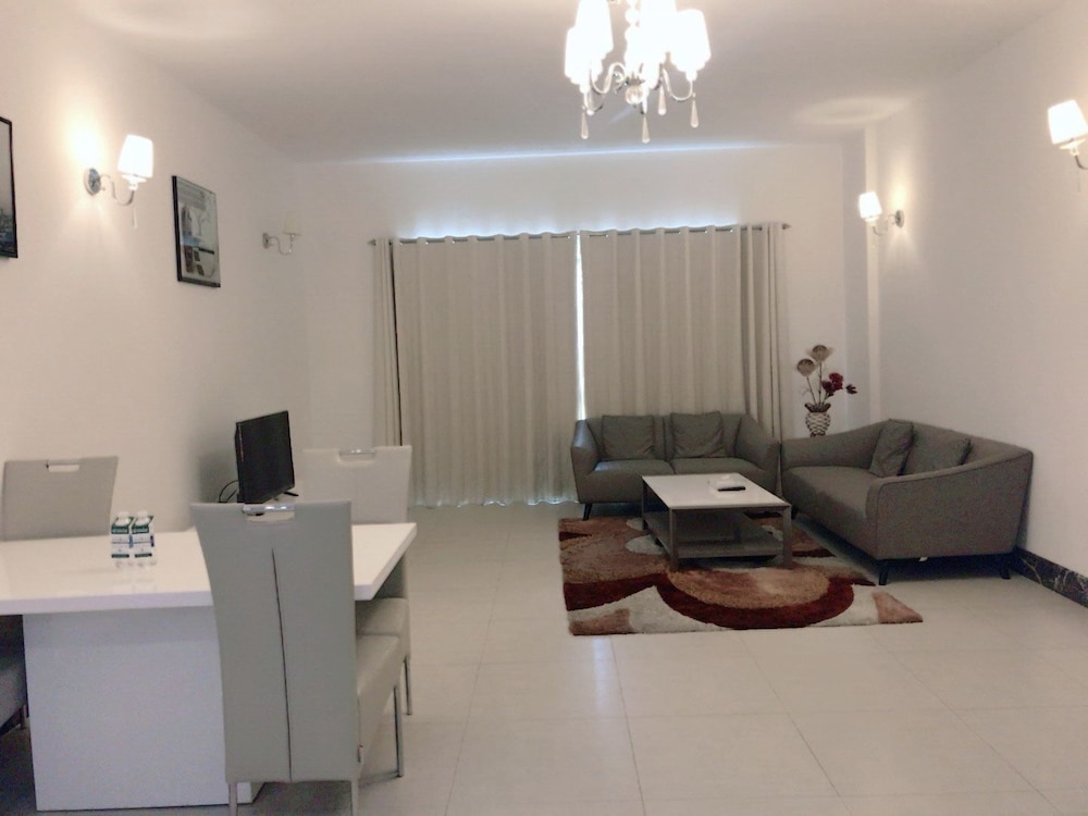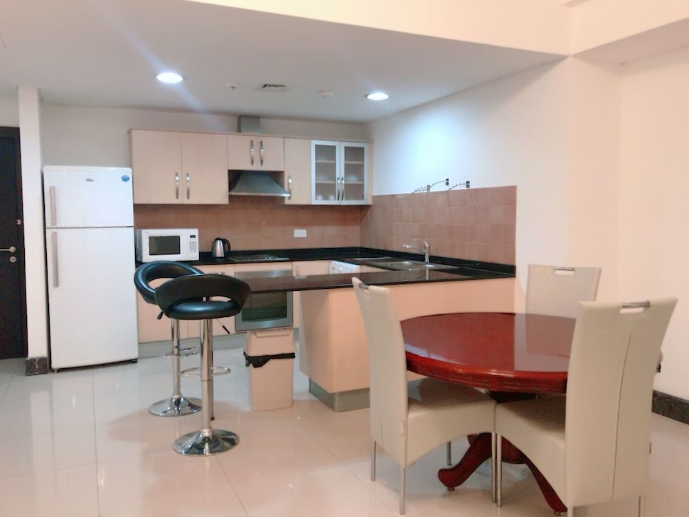 I Manama-området Alfateh ligger detta lägenhetshotell, en kvarts promenad från både Juffair Shopping Centre och Juffair Square köpcentrum. Detta lägenhetshotell ligger 1,1 km från Matrix BH Nöjescenter och 2,4 km från Al-Fatih-moskén. Slå dig till ro i den här luftkonditionerade lägenheten, som har ett kylskåp och en ugn i köket. En platt-tv med kabelkanaler står för underhållningen, och gratis wi-fi gör att du kan hålla dig uppkopplad. Bekvämligheter som ingår är värdeförvaringsskåp och ett separat loungeområde. Städning sker dagligen. Avstånd avrundas till närmsta decimal.