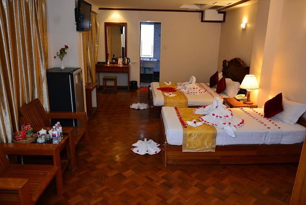 Royal Power Hotel ligger i Mandalay, en tio minuters promenad från både Kulturmuseum och bibliotek och Man Myanmar-torget. Detta hotell ligger 1 km från Shwekyimyint Paya och 1,2 km från Zegyo-marknaden. Känn dig som hemma i ett av de 59 luftkonditionerade rummen med minibarer och platt-tv. Gratis wi-fi gör att du kan hålla dig uppkopplad, och kabel-tv erbjuder underhållning. Badrum med badkar eller dusch, gratis toalettartiklar och hårtorkar. På rummet finns telefon, skrivbord och vattenkokare. Avstånd avrundas till närmsta decimal.