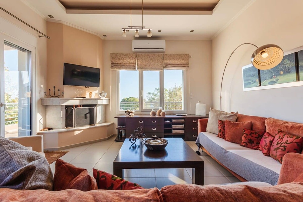 Denna villa ligger i Trifylia, en 3 minuters promenad från Joniska havet och 8 minuter från Vita klippans utsiktspunkt. Denna villa ligger 3,7 km från Lagouvardo strand och 7 km från Vromonéri. Känn dig som hemma i villan. Avstånd avrundas till närmsta decimal.