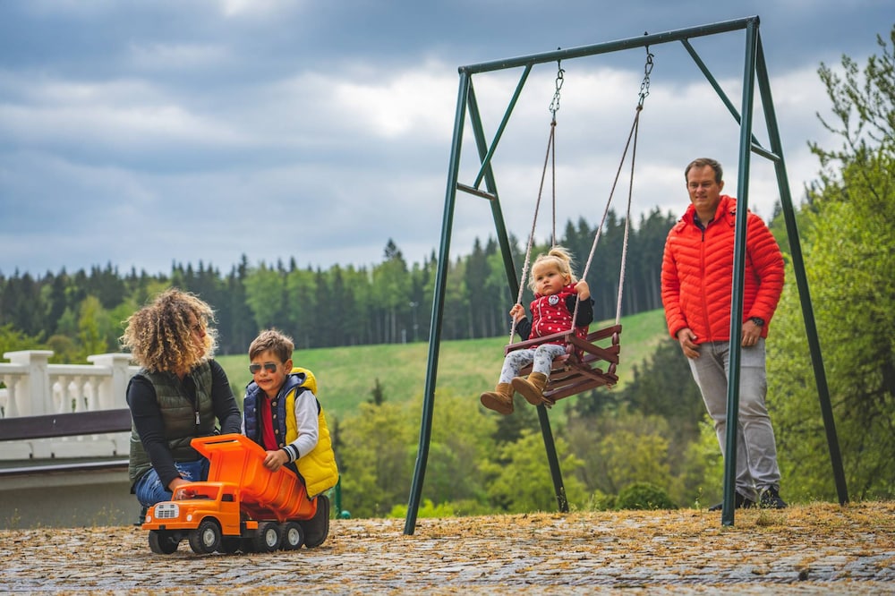 Esplanade Spa and Golf Resort ligger i Marianske Lazne i ett historiskt område, ett stenkast från Ski Areal Marianske Lazne och 4 minuters promenad från Marienbad museum. Detta hotell med familjevänlig profil ligger 0,5 km från Kommunalmuseet och 0,6 km från Jungfru Marie himmelsfärds kyrka. Känn dig som hemma i ett av de 87 luftkonditionerade rummen med minibarer och LCD-tv. Med gratis fast internetanslutning och wi-fi håller du dig uppkopplad, medan satellitkanaler står för underhållningen. Privat badrum med badkar och dusch, bubbelbadkar och gratis toalettartiklar. På rummet finns värdeförvaringsskåp och skrivbord. Städning erbjuds dagligen. Avstånd avrundas till närmsta decimal.
