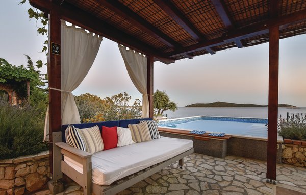 Tillbringa din semester i detta vackra semesterhus som ligger på en tomt vid vattnet i den lilla byn Sevid. Den rymliga och bekväma inredningen är fördelad på tre våningar, med tillgång till första våningen från gatuplan. En inre trappa leder från första våningen till bottenvåningen och andra våningen nås via en yttre trappa. Höjdpunkten är säkerligen en vacker trädgård med en pool och en liten, typisk dalmatisk konoba, idealisk för sällskapliga grillkvällar. Njut också av solen och förfriska dig i poolen Du kan också besöka de vackra städerna Trogir och Split, som kommer att förtrolla dig med sina historiska sevärdheter och en medelhavsatmosfär.