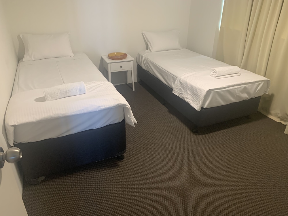 Beachfront Towers ligger i Sunshine Coast (i området Maroochydore), 3 minuter med bil från Mooloolaba Esplanade och 7 minuter från Mooloolaba Beach. Detta lägenhetshotell med familjevänlig profil ligger 0,5 km från Maroochydore Beach och 1,1 km från Alex Skate Park. Känn dig som hemma i ett av de 44 individuellt inredda rummen som har kök med stor kyl/frys och spishäll. Rummen har privata inredda balkonger. Gratis wi-fi gör att du kan hålla dig uppkopplad, och en platt-tv med kabelkanaler erbjuder all underhållning du behöver. På rummet finns telefon, gratis dagstidningar och separata sittutrymmen. Avstånd avrundas till närmsta decimal.