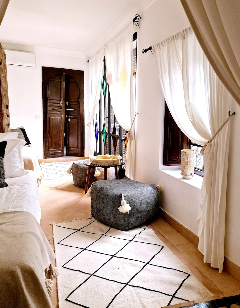 Riad Dar El Mahja ligger i Marrakech (i området Medina), fem minuter med bil från både Jemaa el-Fnaa och Marrakech Plaza. Detta hotell ligger 1,9 km från Majorelleträdgården och 3,5 km från Avenue Mohamed VI. Känn dig som hemma i ett av de 7 rummen med kök. Rummen har privata terrasser. Gratis wi-fi gör att du kan hålla dig uppkopplad. På rummet finns värdeförvaringsskåp och massage på rummet. Städning erbjuds dagligen. Avstånd avrundas till närmsta decimal.