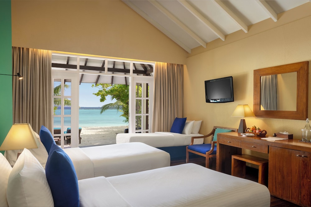 Bor du på Adaaran Select Meedhupparu vid havet i Meedhupparu, har du nära till Meedhoo Harbor. Detta hotell vid stranden ligger relativt nära Maduvvari Harbor. Känn dig som hemma i ett av de 211 luftkonditionerade rummen med minibarer och LCD-tv. Gratis wi-fi gör att du kan hålla dig uppkopplad, och satellit-tv erbjuder underhållning. Privat badrum med dusch, gratis toalettartiklar och hårtorkar. På rummet finns telefon, värdeförvaringsskåp och skrivbord. Avstånd till platsen eller sevärdheten beräknas fågelvägen och speglar kanske därför inte det verkliga reseavståndet.