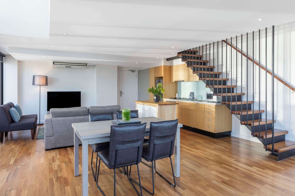 Gäster har tillgång till bland annat dator, kemtvätt/tvättjänster och reception (öppen dygnet runt). Planerar du ett event i Melbourne? På detta lägenhetshotell finns det event- och konferensutrymmen på upp till 200 kvadratmeter, däribland konferenscenter och mötesrum. Du får tillgång till bland annat inomhuspool, bubbelpool och bastu. Boendet har även gratis wi-fi, conciergetjänster och barnpassning mot en avgift. Deras restaurang Oak & Vine Restaurant, som specialiserat sig på modern europeisk gastronomi, har en loungebar där du kan ta en drink, men du kan även ta det lugnt på rummet med rumsservice (under begränsade tider). Frukostbuffé serveras på vardagar mellan 06.30 och 10.00 och på helger mellan 07.30 och 11.00 mot en avgift.Du kommer att ombes att betala följande avgifter på boendet – avgifterna kan inkludera tillämpliga skatter: