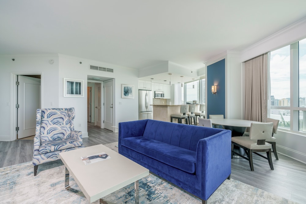 Residences at Fontainebleau Miami ligger i Miami Beach (i området Mid Beach), 3 min promenad från Fontainebleau och 6 min från Beach, Miami Beach. Detta lägenhetshotell vid stranden ligger 2,6 km från Collins Avenue Shopping Area och 3,1 km från Miami Beach Convention Center. Känn dig som hemma i ett av de 54 rummen. Gratis wi-fi gör att du kan hålla dig uppkopplad. Avstånd avrundas till närmsta decimal.