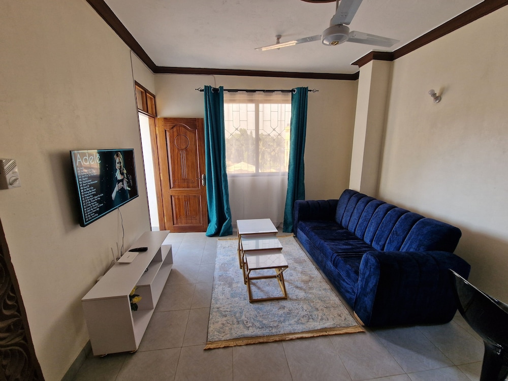 Denna lägenhet ligger i Mombasa nära stranden, en tio minuters bilfärd från både Bamburi Beach och Haller Park. Denna lägenhet ligger 6,2 km från Nyali Beach och 40 km från Diani Beach. Slå dig till ro i den här lägenheten och gör dig hemmastadd i köket, som har en stor kyl med frys och en spishäll. Gratis wi-fi gör att du kan hålla dig uppkopplad, och en platt-tv erbjuder underhållning. Avstånd avrundas till närmsta decimal.