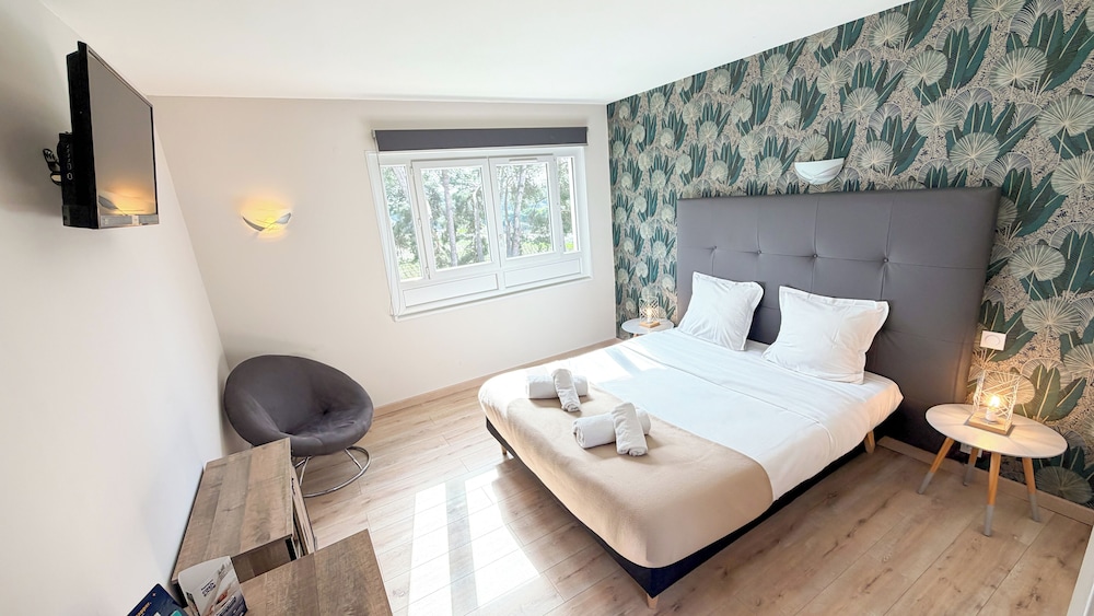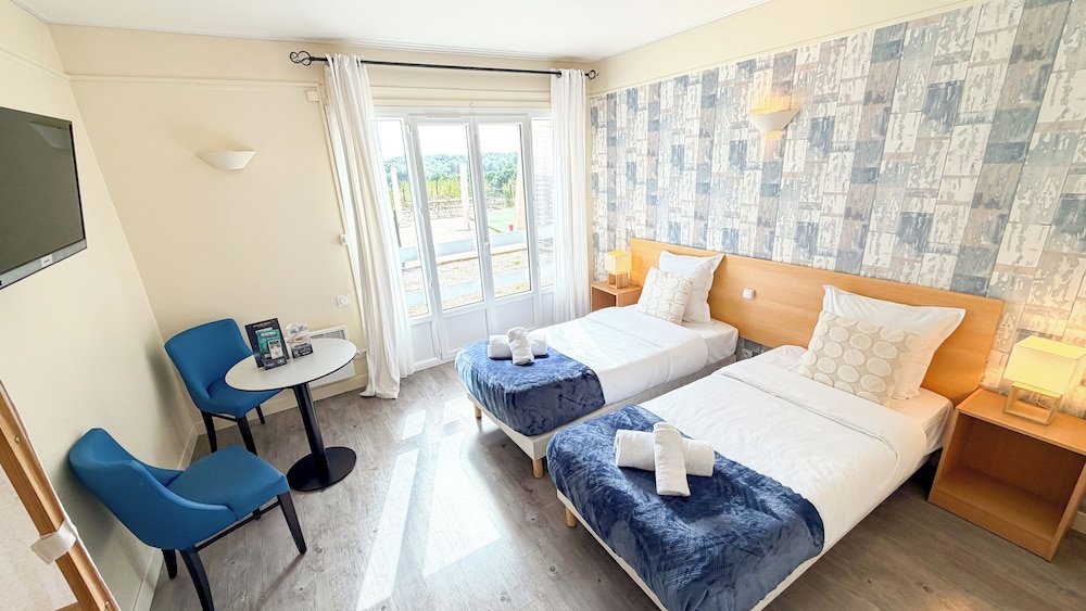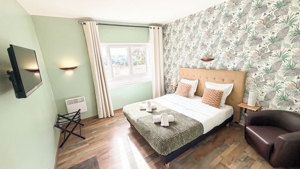 Avgiftsfri parkering erbjuds på plats. Här får du tillgång tilll säsongsöppen utomhuspool och kan njuta av utsikten från terrassen och trädgården. Boendet har även gratis wi-fi, en tv i allmänt utrymme och bankettsal. Du kan äta middag på hotellets restaurang Restaurant Les Rocailles, som specialiserar sig på franska köket, eller beställa snacks på deras kafé. Mingla med andra gäster - här erbjuds alla gäster gratis mottagning dagligen. Avsluta dagen med en drink på boendets bar. Frukostbuffé serveras på vardagar mellan 07.00 och 10.00 och på helger mellan 08.00 och 10.00 mot en avgift. Detta boende har fått sin officiella stjärngradering från Frankrikes Turistutvecklingsbyrå, ATOUT France.Du kommer att ombes att betala följande avgifter på boendet – avgifterna kan inkludera tillämpliga skatter: