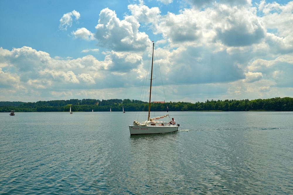 Hotel Solar Palace SPA & Wellness ligger i Mragowo vid sjön, en 4 minuters promenad från Amphiteatre Mragowo och 4 minuters bilfärd från St Wojciechs kyrka. Detta hotell med exklusiv profil ligger 2,8 km från Ewangelican Church of Mragowo och 3,1 km från Bismarck Tower. Känn dig som hemma i ett av de 60 rummen med platt-tv. Sängen har memory foam-madrass och sängtillbehör av högsta kvalitet. Gratis wi-fi gör att du kan hålla dig uppkopplad. Badrum med dusch, hårtorkar och badrockar. Avstånd avrundas till närmsta decimal.