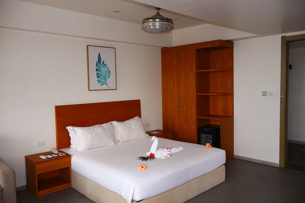 Nalagi Hotel ligger i Nadi i affärskvarteren, en kvart med bil från både Port Denarau Marina och Wailoaloa Beach. Detta hotell ligger 9,1 km från Port Denarau och 20 km från Vuda Point Marina. Känn dig som hemma i ett av de 197 luftkonditionerade rummen med platt-tv. Sängen har Select Comfort-madrass, duntäcken och sängtillbehör av högsta kvalitet. Gratis wi-fi gör att du kan hålla dig uppkopplad, och kabel-tv erbjuder underhållning. Badrum med dusch, gratis toalettartiklar och hårtorkar. Avstånd avrundas till närmsta decimal.