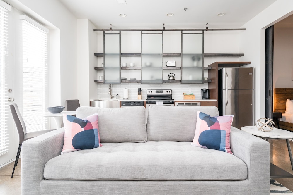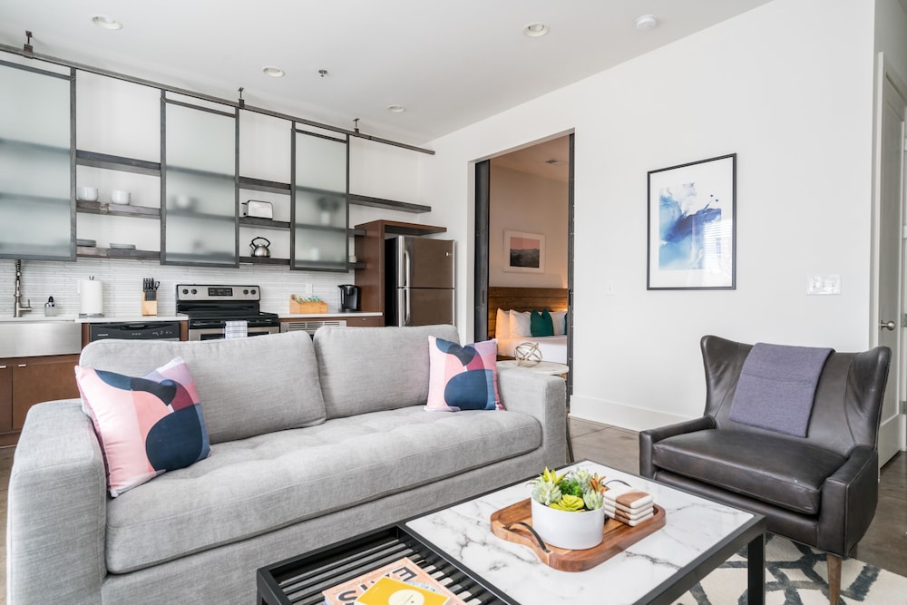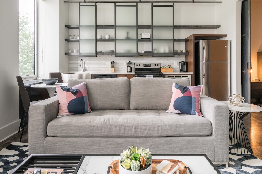 Mint House at The Reserve - Nashville ligger centralt i Nashville, en kvarts promenad från både Broadway och Ryman Auditorium. Denna lägenhet ligger 1 km från Bridgestone Arena och 1,5 km från Music City Center. Känn dig som hemma i ett av de 61 individuellt möblerade rummen som har kök med stor kyl/frys och ugn. Gratis wi-fi gör att du kan hålla dig uppkopplad, och en platt-tv erbjuder underhållning. På rummet finns mikrovågsugnar och kaffe- och tebryggare. Avstånd avrundas till närmsta decimal.