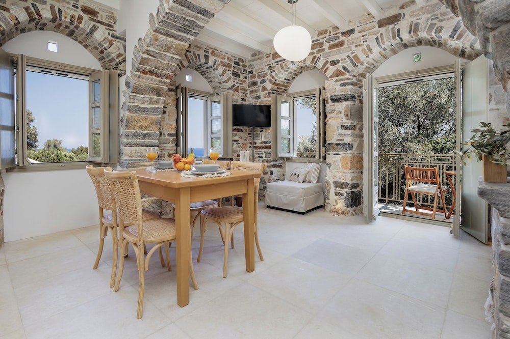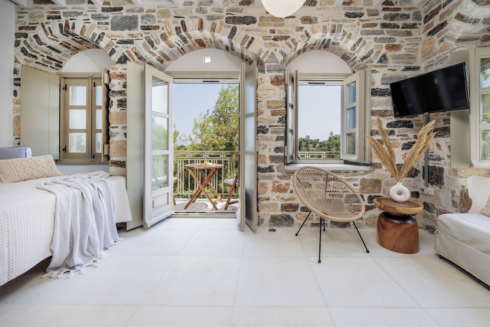 Zos Suites ligger i Naxos och placerar dig 0,6 km från Psili Ammos strand och 8,9 km från Panormos strand. Denna gård för landsbygdsturism ligger 9,7 km från Moutsouna strand och 22,7 km från Apollons tempel. Skäm bort dig och bo i ett av 4 individuellt inredda rum med eldstäder och smart-tv. Rummen har privata terrasser. Kök utrustat med ugn, mikrovågsugn och espressobryggare. Kabel-tv erbjuder underhållning. Avstånd avrundas till närmsta decimal.