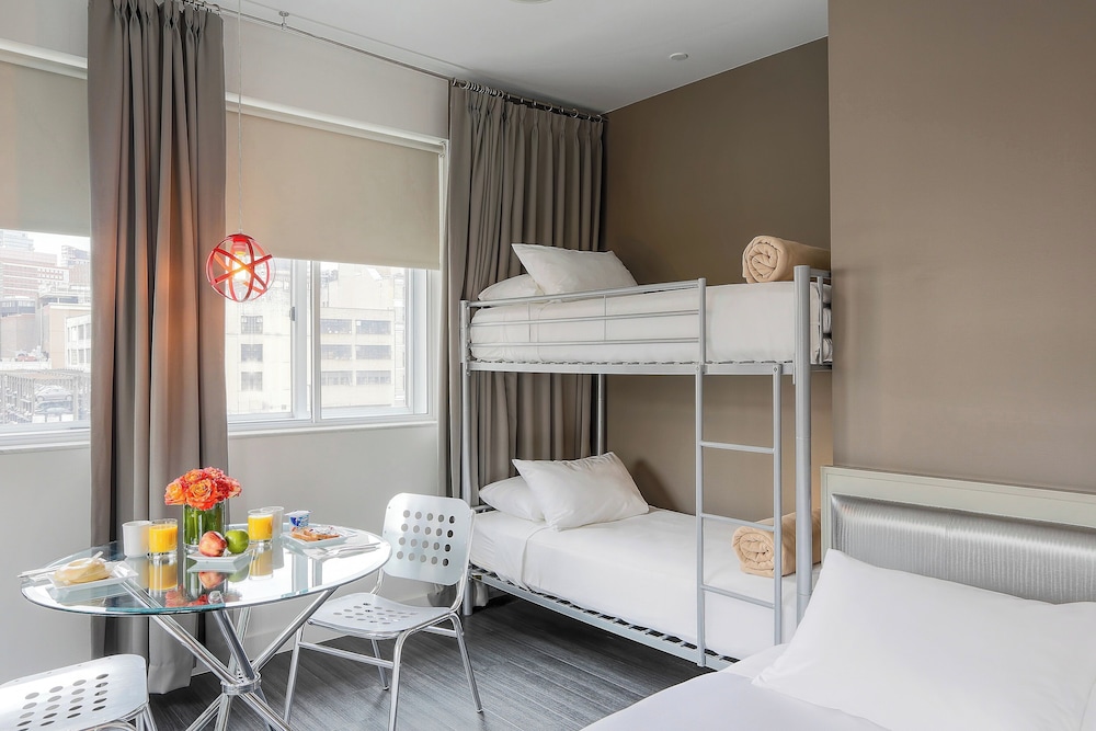 Gäster har tillgång till bland annat gratis internet, business-service och expressutcheckning. Parkering (avgift tillkommer) erbjuds på plats. Här har du tillgång till fitnesscenter och kan njuta av terrassen. Detta hotell i art décostil har även conciergetjänster, en souvenirbutik eller tidningskiosk och en tv i allmänt utrymme. NU Hotel Brooklyn har en restaurang där gästerna kan avnjuta en utsökt måltid. Man kan även köpa nåt på deras snackbar/deli. Avsluta dagen med en drink på boendets bar. En gratis kontinental frukost ingår.Du kommer att ombes att betala följande avgifter på boendet – avgifterna kan inkludera tillämpliga skatter: