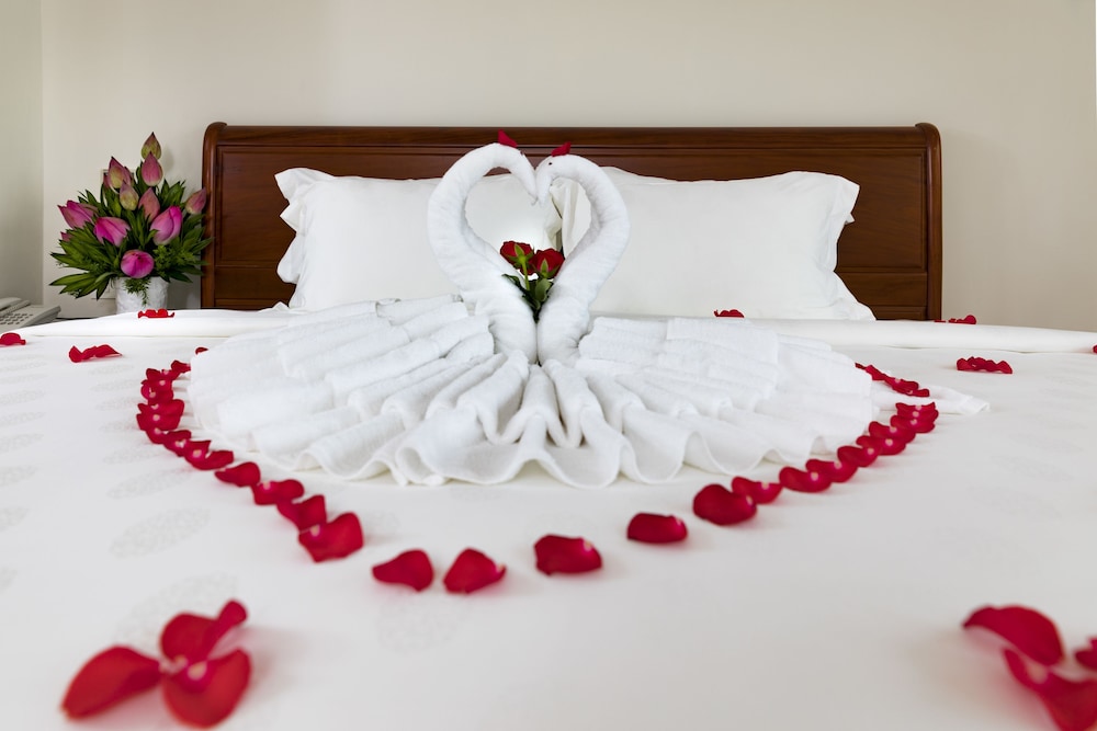 Red Sun Nha Trang Hotel ligger i hjärtat av Nha Trang, en fem minuters bilfärd från både Louisiane Brewhouse och April 2 Square. Detta hotell ligger 1,7 km från Tram Huong Tower och 2 km från Nha Trang nattmarknad. Känn dig som hemma i ett av de 145 luftkonditionerade rummen med kylskåp och LCD-tv. Gratis wi-fi gör att du kan hålla dig uppkopplad, och kabel-tv erbjuder underhållning. Badrummen har gratis toalettartiklar och hårtorkar. På rummet finns telefon, värdeförvaringsskåp och skrivbord. Avstånd avrundas till närmsta decimal.