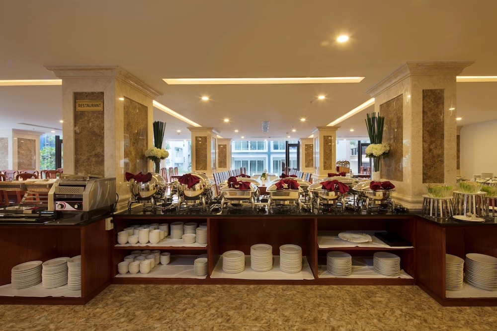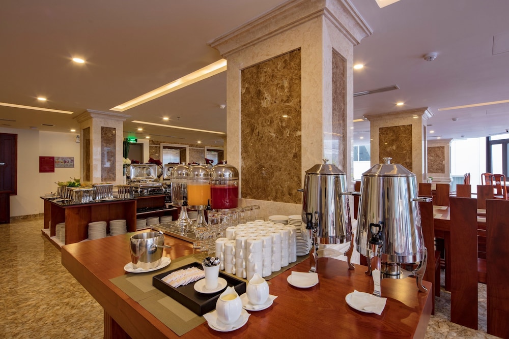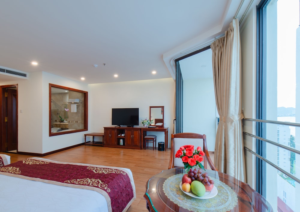 Gäster har tillgång till bland annat business-service dygnet runt, kemtvätt/tvättjänster och reception (öppen dygnet runt). Planerar du ett event i Nha Trang? På detta hotell finns det event- och konferensutrymmen på upp till 80 kvadratmeter, däribland konferensrum och mötesrum. Flygtransfer tur/retur erbjuds mot en avgift (tillgänglig dygnet runt). Du får tillgång till utomhuspool, inomhuspool och bastu. Boendet har även gratis wi-fi, conciergetjänster och en souvenirbutik eller tidningskiosk. Du kan äta lunch och middag på hotellets restaurang RedSun Restaurant, som specialiserar sig på lokala och internationella rätter. Du kan även äta gott på deras kafé eller bara ta det lugnt på rummet med rumsservice dygnet runt. Mingla med andra gäster - här erbjuds alla gäster gratis mottagning dagligen. Koppla av med din favoritdrink i deras bar eller bar vid poolen. Frukost serveras mot en avgift dagligen mellan 06.30 och 09.30.- Frukostavgift: VND 150000–150000 för vuxna och VND 100000–100000 för barn (ungefärligt pris)