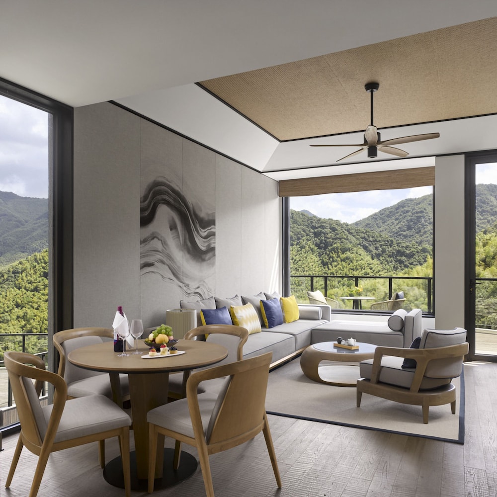 Ahn Lan Ninghai ligger i Ningbo i bergen, 19,8 km från Ninghai internationella konferens- och utställningscenter och 20,5 km från Yong-floden. Detta hotell med spa ligger 26 km från Hengshan Lake och 31,9 km från Ningbo Ninghai Hengshan-ön. Känn dig som hemma i ett av de 100 individuellt inredda rummen med gratis produkter i minibar och LCD-tv. Sängen har duntäcken och sängtillbehör av högsta kvalitet. Rummen har privata balkonger. Gratis wi-fi gör att du kan hålla dig uppkopplad, och kabel-tv erbjuder underhållning. Badrum med badkar och dusch, regndusch och källvattenbad. Avstånd avrundas till närmsta decimal.