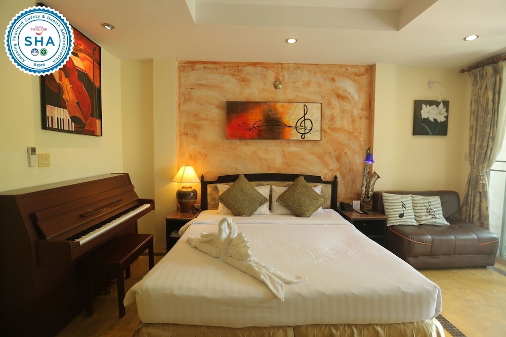 My Way Hua Hin Music Hotel placerar dig mitt i Hua Hin, 9 min promenad från BlúPort Hua Hins shoppingcenter och 13 min promenad från Hua Hin Beach. Detta hotell med familjevänlig profil ligger 1,7 km från Cicada-marknaden och 2,3 km från Vana Nava Hua Hin Water Park. Känn dig som hemma i ett av de 44 individuellt inredda rummen med kylskåp och dvd-spelare. Med gratis fast internetanslutning och wi-fi håller du dig uppkopplad, medan kabelkanaler står för underhållningen. Privat badrum med gratis toalettartiklar och bidéer. På rummet finns värdeförvaringsskåp och kaffe- och tebryggare. Städning erbjuds dagligen. Avstånd avrundas till närmsta decimal.