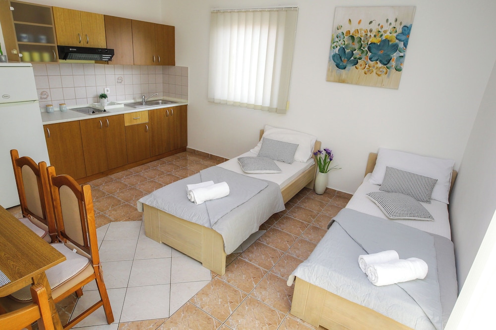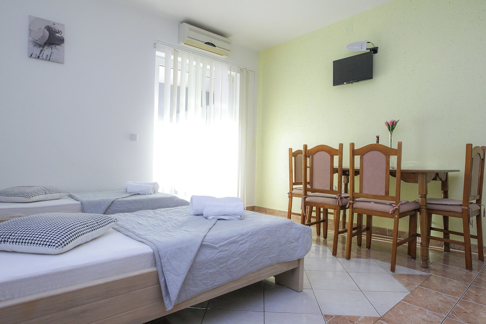 Pool Apartments Lucky Luke ligger i Novalja nära stranden, en fem minuters bilfärd från och Vrtic-stranden och Strasko-stranden. Detta pensionat ligger 2,6 km från Zrćes strand och 2,9 km från Novalja stadsmuseum. Känn dig som hemma i ett av de 6 luftkonditionerade rummen som har kök med kylskåp och spishäll. Gratis wi-fi gör att du kan hålla dig uppkopplad, och en platt-tv erbjuder underhållning. På rummet finns mikrovågsugnar och vattenkokare; strykutrustning finns på begäran. Avstånd avrundas till närmsta decimal.