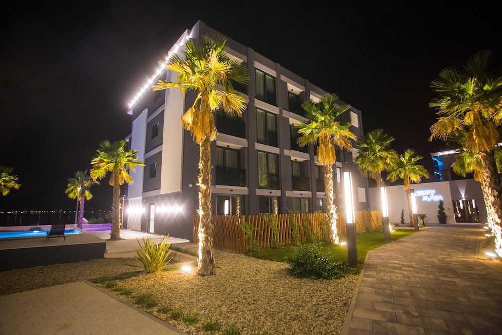 Liberty Plaza ligger i Novalja på stranden, en kvarts bilfärd från både Zrćes strand och Vrtic-stranden. Detta hotell vid stranden ligger 28,4 km från Kvarnerviken och 1,1 km från Strasko-stranden. Känn dig som hemma i ett av de 68 individuellt möblerade rummen med minibarer och LCD-tv. Sängen i ditt rum har memory foam-madrass. Rummen har privata inredda balkonger/terrasser. Gratis wi-fi gör att du kan hålla dig uppkopplad, och satellit-tv erbjuder underhållning. Badrum med dusch, gratis toalettartiklar och hårtorkar. Avstånd avrundas till närmsta decimal.