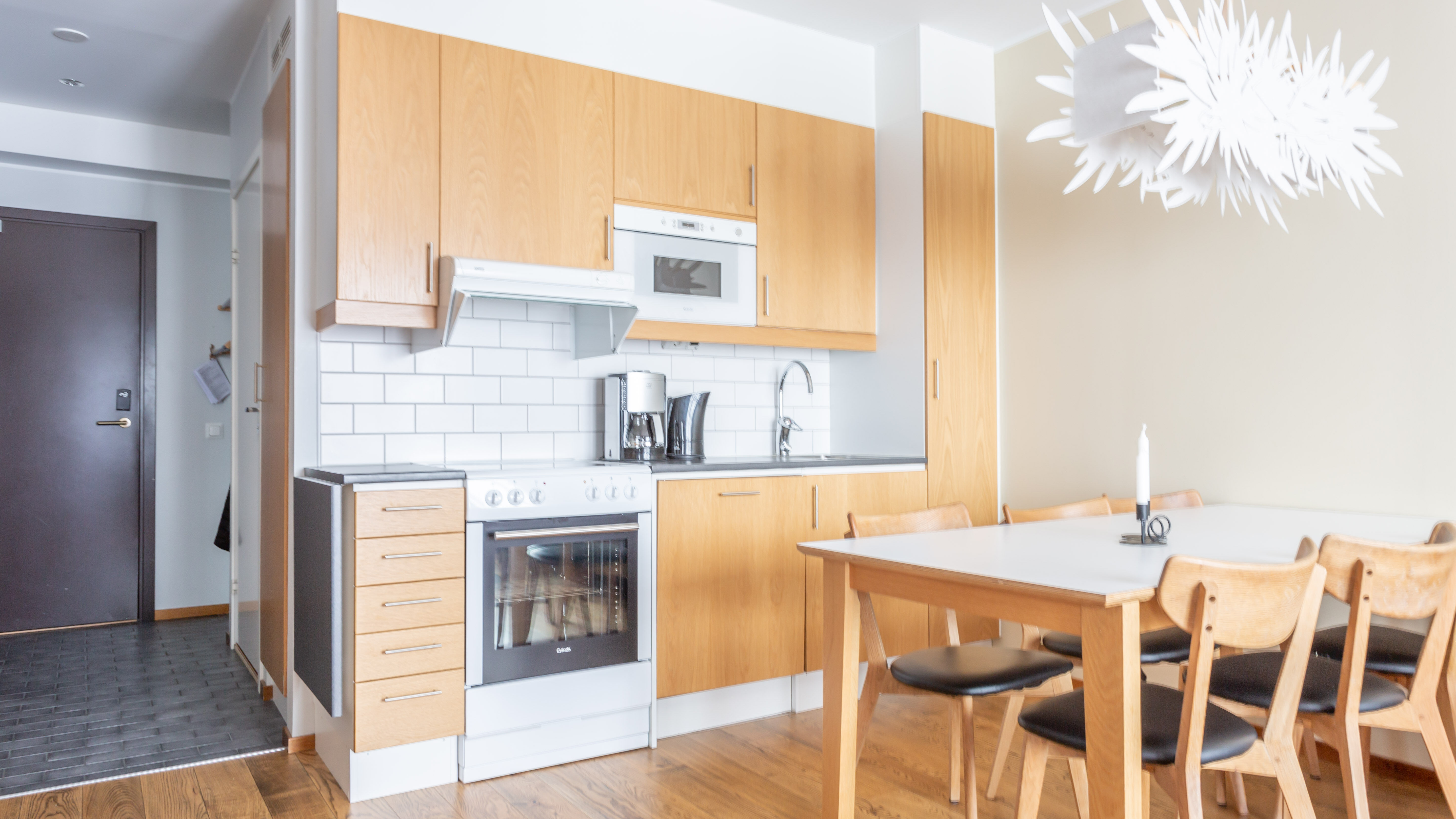 Köksavdelning I det välutrustade köket finns bland annat; spis ugn, kyl frys diskmaskin, kaffebryggare och vattenkokare.