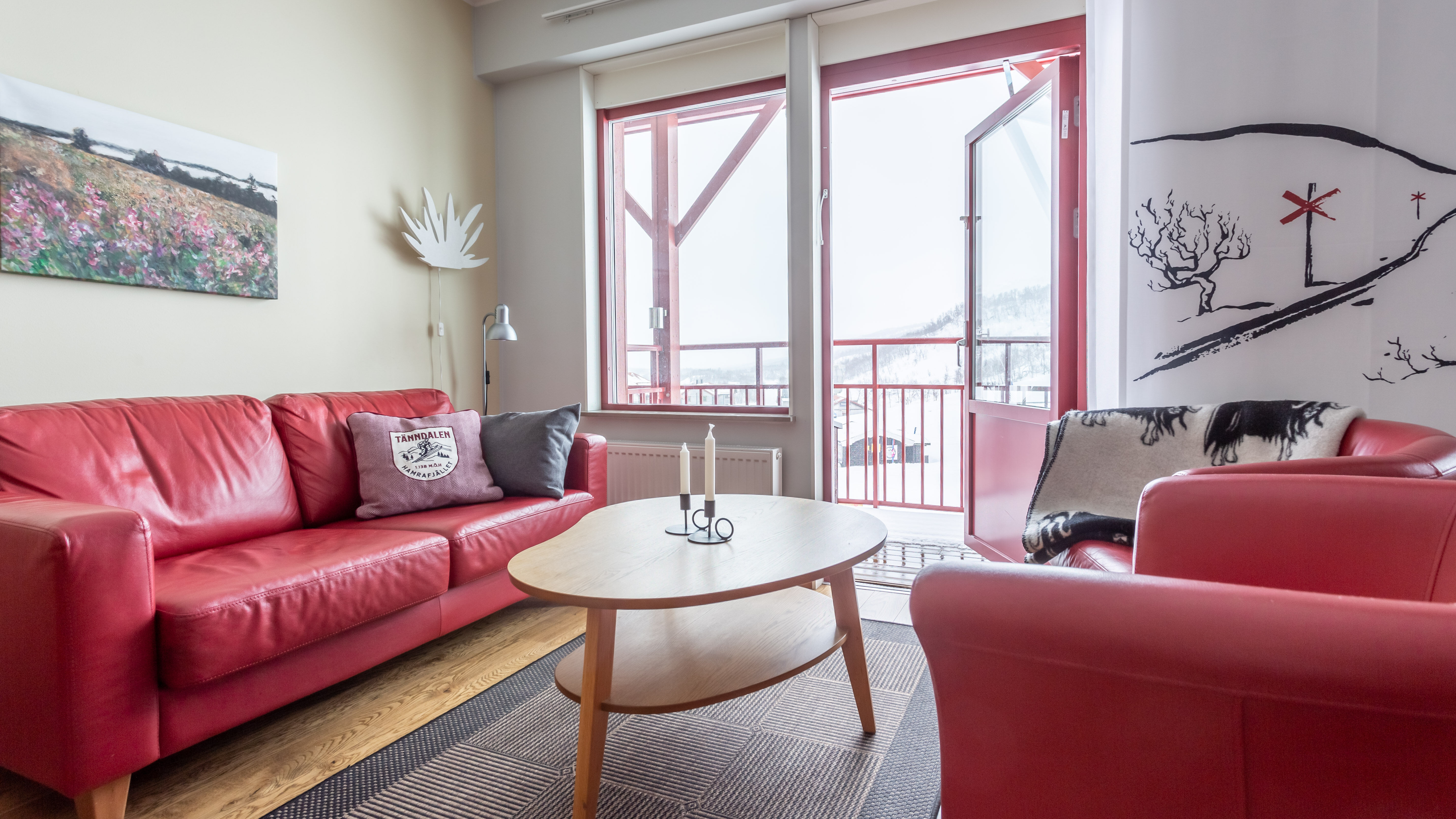 Ski Lodge 308 är en hemtrevlig 46 kvm lägenhet på våningsplan 3 som har 6 bäddar i 2 sovrum och en balkong i norrläge med utsikt över dalgången.