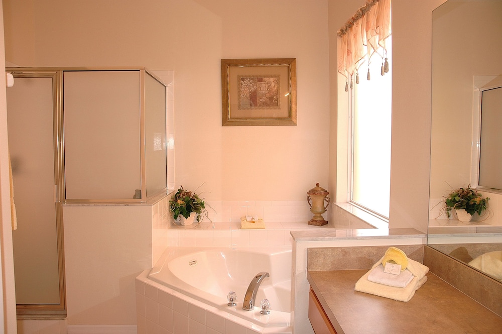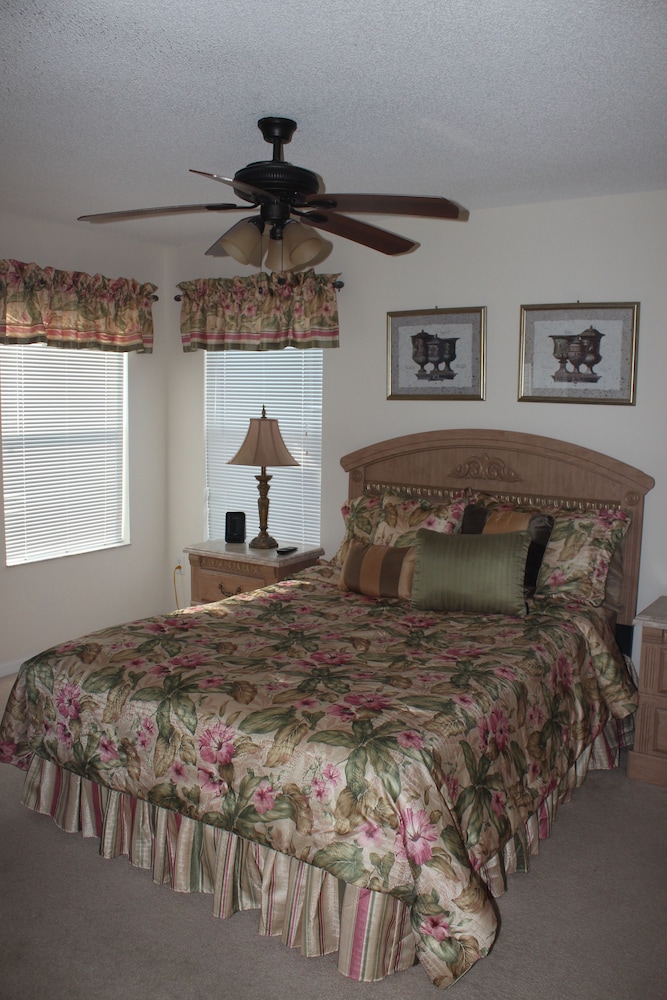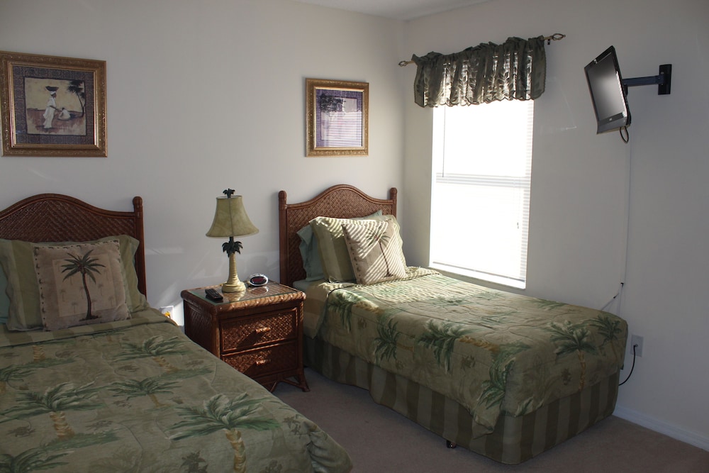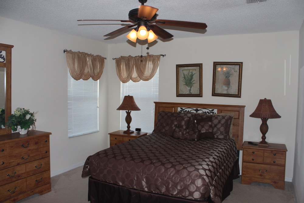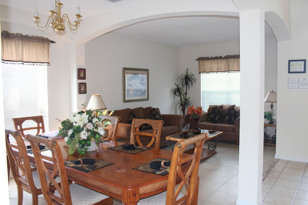 Denna semesterbostad ligger i Kissimmee i nöjesdistriktet, en kvart med bil från både Gamla stadskärnan och Walt Disney World® Resort. Detta semesterboende med familjevänlig profil ligger 14,6 km från Disney Springs™ och 16,8 km från Disney's Hollywood Studios®. Skäm bort dig själv och bo i den här individuellt inredda semesterbostaden, som har privat pool och privat bubbelpool. Det finns en privat lanai. Köket är utrustat med en stor kyl med frys, en ugn och en spishäll. En 47-tums LED-tv med digitalkanaler står för underhållningen, och gratis wi-fi ser till att du kan hålla dig uppkopplad. Det privata badrummet har djupt badkar och hårtork. Avstånd avrundas till närmsta decimal.