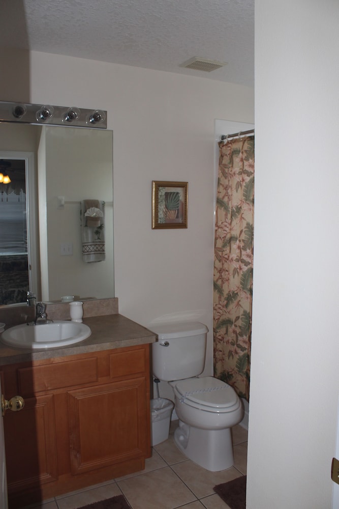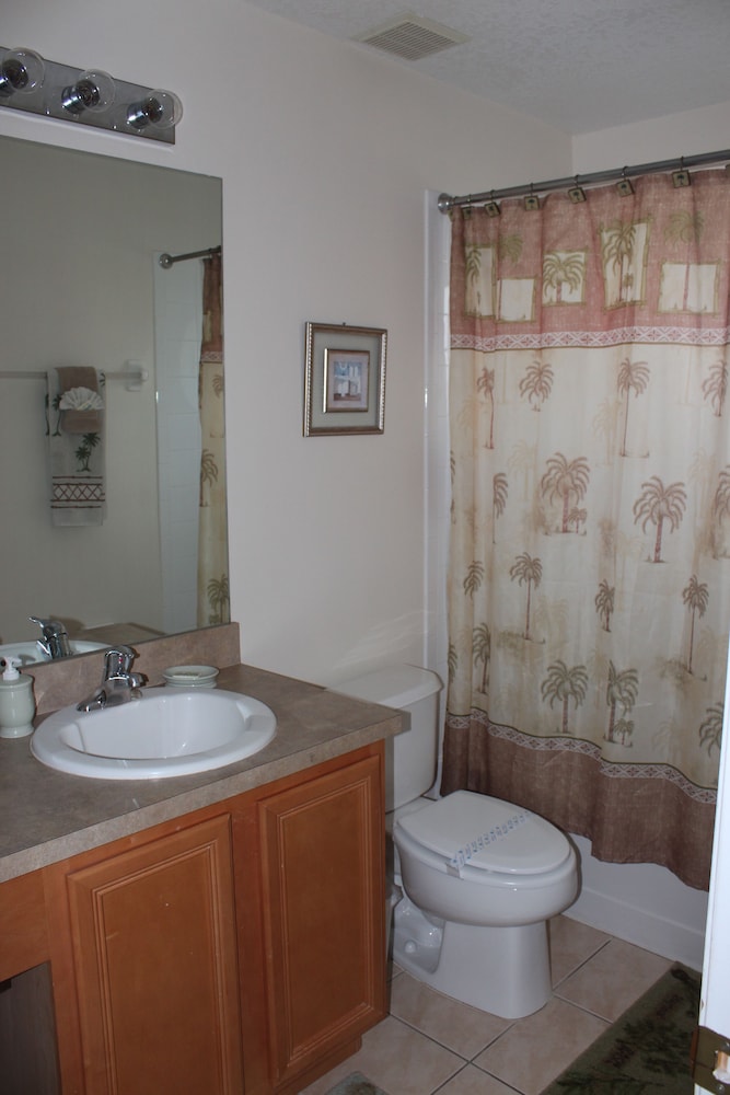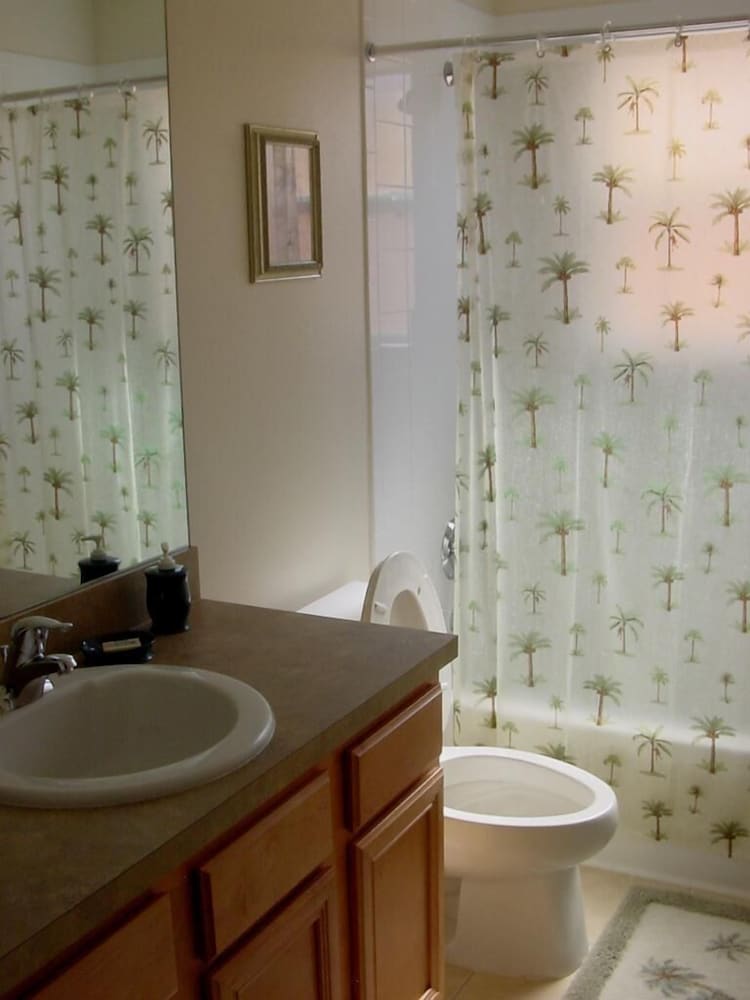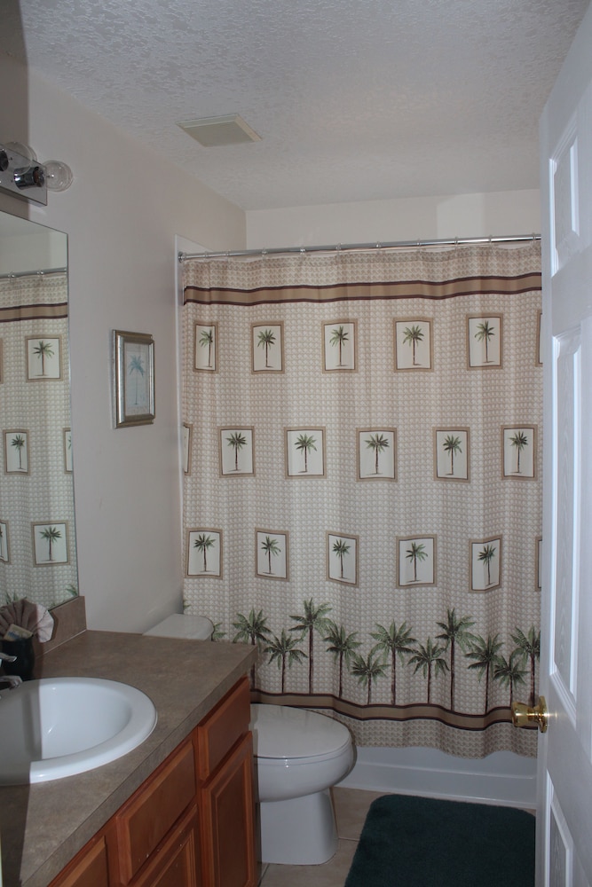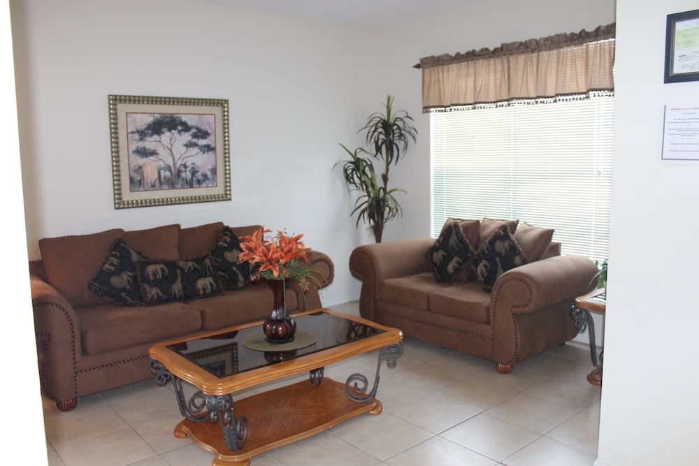 Denna semesterbostad ligger i Kissimmee i nöjesdistriktet, en kvart med bil från både Gamla stadskärnan och Walt Disney World® Resort. Detta semesterboende med familjevänlig profil ligger 14,6 km från Disney Springs™ och 16,8 km från Disney's Hollywood Studios®. Skäm bort dig själv och bo i den här individuellt inredda semesterbostaden, som har privat pool och privat bubbelpool. Det finns en privat lanai. Köket är utrustat med en stor kyl med frys, en ugn och en spishäll. En 47-tums LED-tv med digitalkanaler står för underhållningen, och gratis wi-fi ser till att du kan hålla dig uppkopplad. Det privata badrummet har djupt badkar och hårtork. Avstånd avrundas till närmsta decimal.