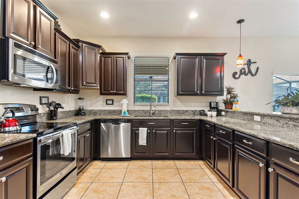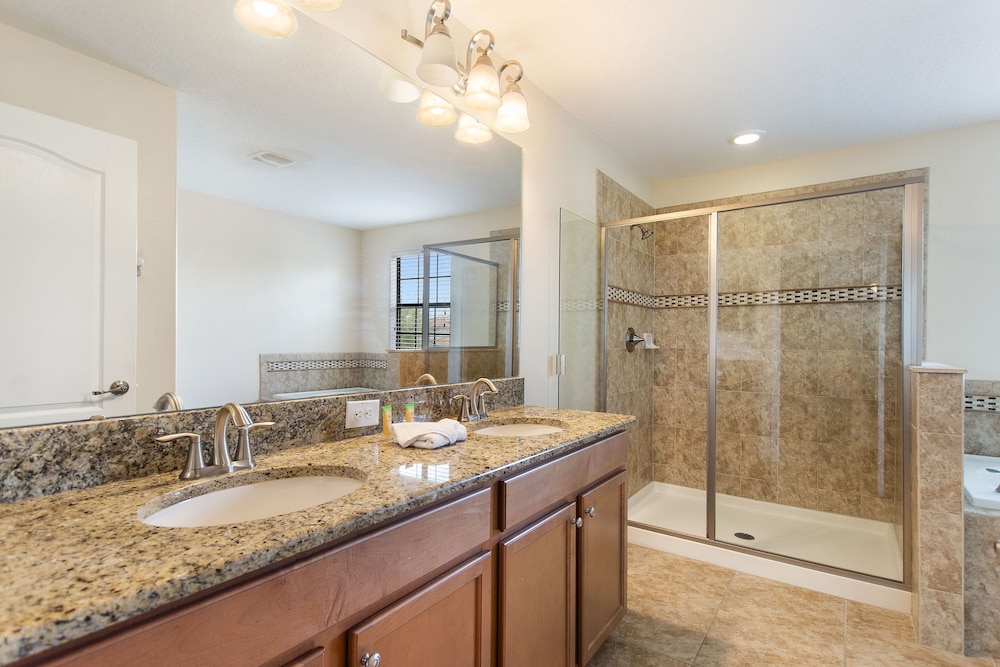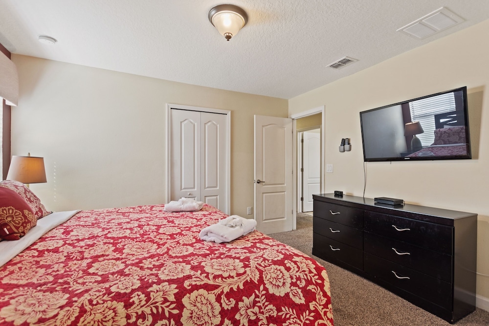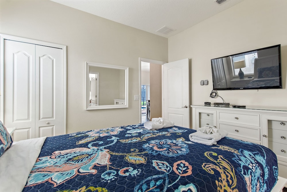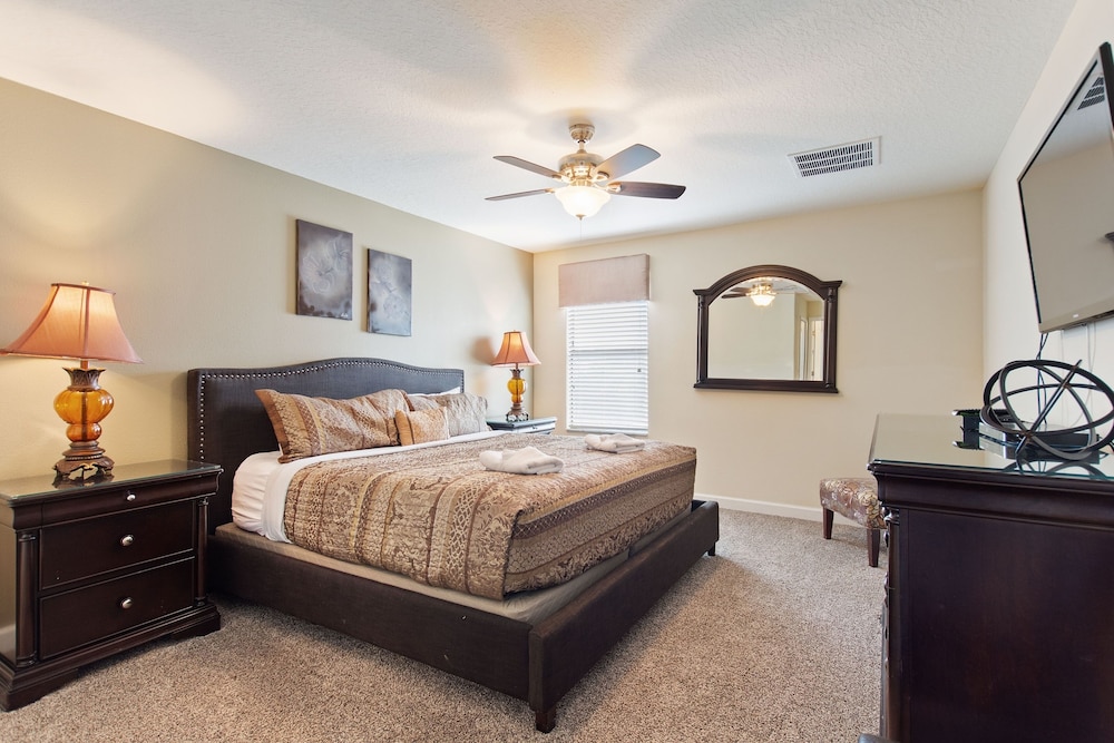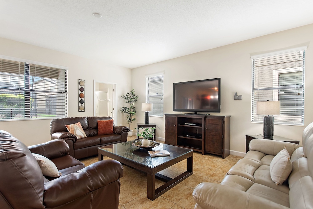 Denna villa ligger i Four Corners (i området Champions Gate), en kvarts bilfärd från både Champions Gate Golf Club och Reunion Resort Golf Course. Denna villa med golfbana ligger 18,7 km från Gamla stadskärnan och 20,1 km från ESPN Wide World of Sports Complex. Känn dig som hemma i villan, som har kylskåp och smart-tv. Gratis wi-fi gör att du kan hålla dig uppkopplad. Bekvämligheter som ingår är skrivbord och kaffe- och tebryggare. Avstånd avrundas till närmsta decimal.