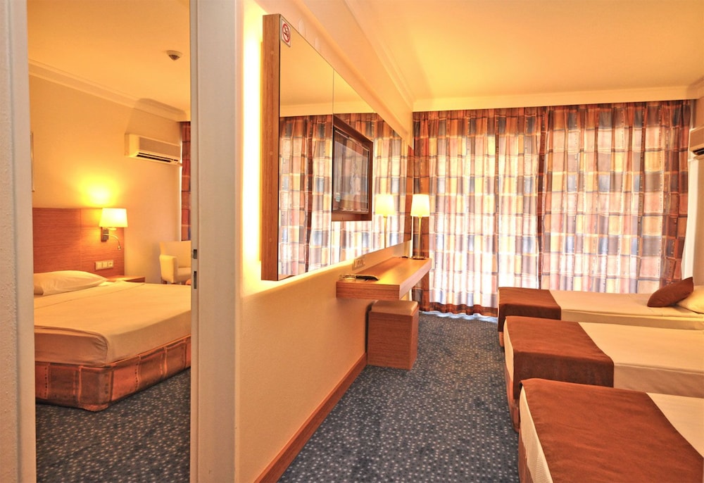 Hotel Grand Efe ligger i Menderes, en kvarts bilfärd från både Ozdere Beach och Yali Castle Aquapark. Detta hotell med all-inclusive ligger 28,8 km från Ephesus och 26,4 km från Pamucak Beach. Känn dig som hemma i ett av de 385 luftkonditionerade rummen med minibarer och LED-tv. Rummen har privata balkonger. Gratis wi-fi gör att du kan hålla dig uppkopplad, och satellit-tv erbjuder underhållning. Badrummen har dusch och hårtorkar. Avstånd avrundas till närmsta decimal.