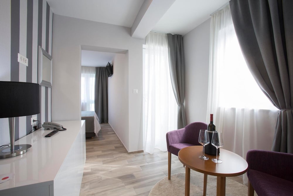 Hotel Intermezzo ligger i Pag nära stranden, en kvarts promenad från både Spetsmuseum och St. Marias kyrka. Detta hotell ligger 23,9 km från Zrćes strand och 2,8 km från Saltmuseet. Känn dig som hemma i ett av de 18 luftkonditionerade rummen med minibarer och platt-tv. Sängen har Select Comfort-madrass, duntäcken och sängtillbehör av högsta kvalitet. Med gratis fast internetanslutning och wi-fi håller du dig uppkopplad, medan satellitkanaler står för underhållningen. Privat badrum med dusch, gratis toalettartiklar och hårtorkar. Avstånd avrundas till närmsta decimal.