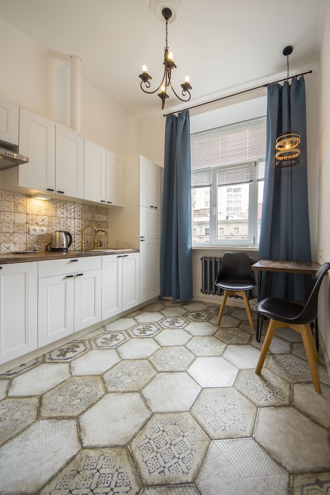 Scandinavian Apartments ligger i hjärtat av Kiev, ett stenkast från både Chresjtjatyk-gatan och Arena City. Denna lägenhet ligger 0,4 km från Lesja Ukrajinkas nationella akademiska teater för ryskt drama och 0,8 km från Mykola Bazhans litterära minnesmuseum. Känn dig som hemma i ett av de 3 luftkonditionerade rummen som har kök med kylskåp och spishäll. Gratis wi-fi gör att du kan hålla dig uppkopplad, och en platt-tv med kabelkanaler erbjuder all underhållning du behöver. På rummet finns mikrovågsugnar och vattenkokare. Städning erbjuds på begäran. Avstånd avrundas till närmsta decimal.