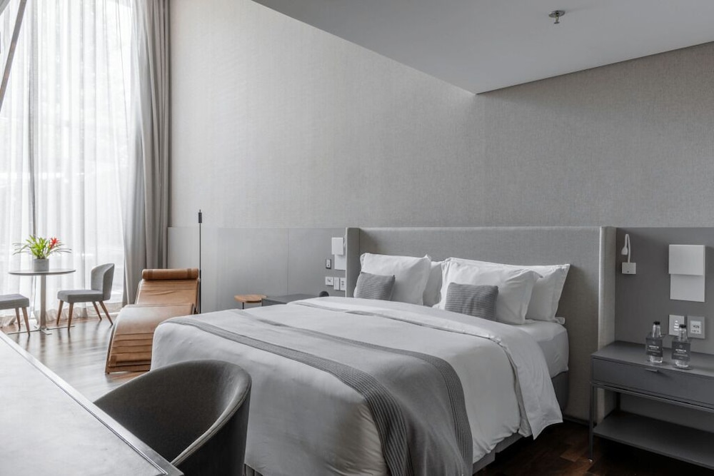 Suryaa Hotel Pinhais, Curio Collection by Hilton ligger i Pinhais bredvid en golfbana, 9 min med bil från Hospital Vita Linha Verde. Detta hotell med golfbana ligger 15,2 km från Rua 24 horas och 17,7 km från Barigui-parken. Känn dig som hemma i ett av de 25 individuellt inredda rummen med minibarer och smart-tv. Sängen har bäddmadrass och sängtillbehör av högsta kvalitet. Gratis wi-fi gör att du kan hålla dig uppkopplad, och kabel-tv erbjuder underhållning. Badrummen har badkar och dusch, djupa badkar och hårtorkar. Avstånd avrundas till närmsta decimal.