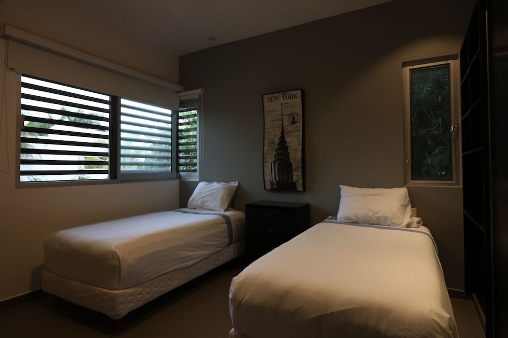Denna villa ligger i Playa del Carmen (i området Playacar), 4 minuter med bil från Playacar och 7 minuter från Quinta Avenida. Denna villa ligger 4 km från Playa del Carmen stora strand och 9 km från Xcaret Eco nöjespark. Slå dig till ro i den här luftkonditionerade villan, som har en stor kyl med frys och en mikrovågsugn i köket. Det finns en privat möblerad balkong/terrass. En 20-tums platt-tv med kabelkanaler står för underhållningen, och gratis wi-fi ser till att du kan hålla dig uppkopplad. Avstånd avrundas till närmsta decimal.