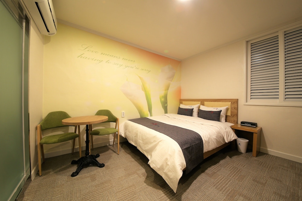 Pohang Jukdo Market The Seven ligger i Pohang, en fem minuters bilfärd från både Pohang Munhwa Konsthall och Jukdo Market. Detta motell ligger 24,5 km från Bomun Lake och 4,2 km från Pohang University of Science and Technology. Känn dig som hemma i ett av de 32 luftkonditionerade rummen med kylskåp. Det finns datorer med gratis wi-fi. Badrummen har badkar eller dusch och hårtorkar. På rummet finns telefon. Städning erbjuds dagligen. Avstånd avrundas till närmsta decimal.