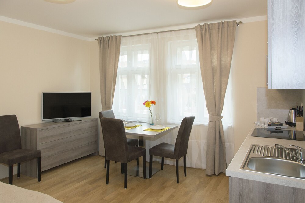 Limes Apartments ligger i Prag (i området Zizkov), 4 minuter med bil från Wenceslas-torget och 5 minuter från Torget i Gamla Stan. Denna lägenhet ligger 4,9 km från Karlsbron och 6 km från Prags slott. Känn dig som hemma i ett av de 24 rummen som har kök med kylskåp och spishäll. Gratis wi-fi gör att du kan hålla dig uppkopplad, och en platt-tv erbjuder underhållning. På rummet finns skrivbord och mikrovågsugnar. Städning erbjuds på begäran. Avstånd avrundas till närmsta decimal.