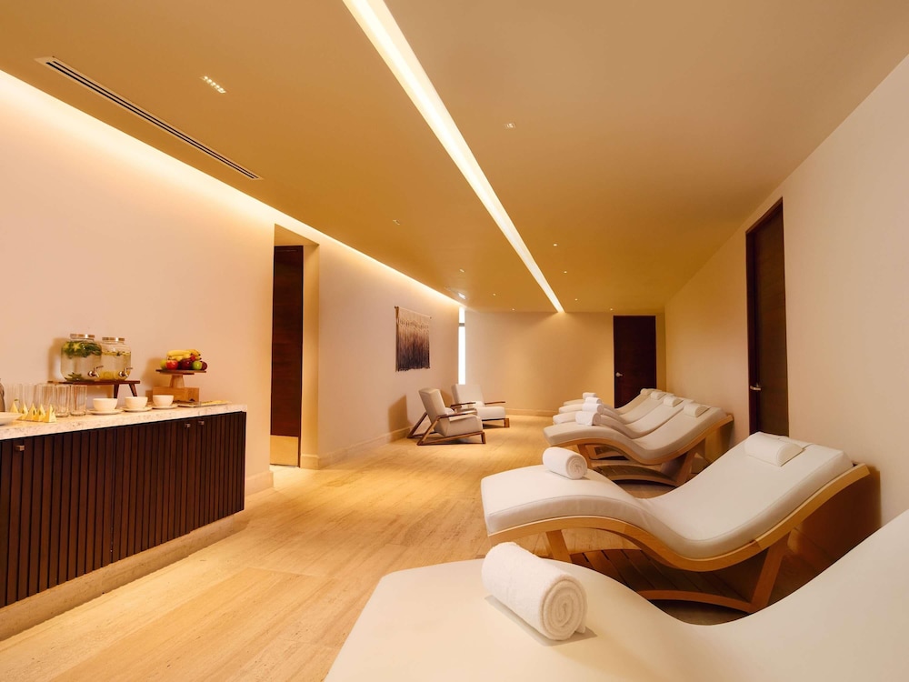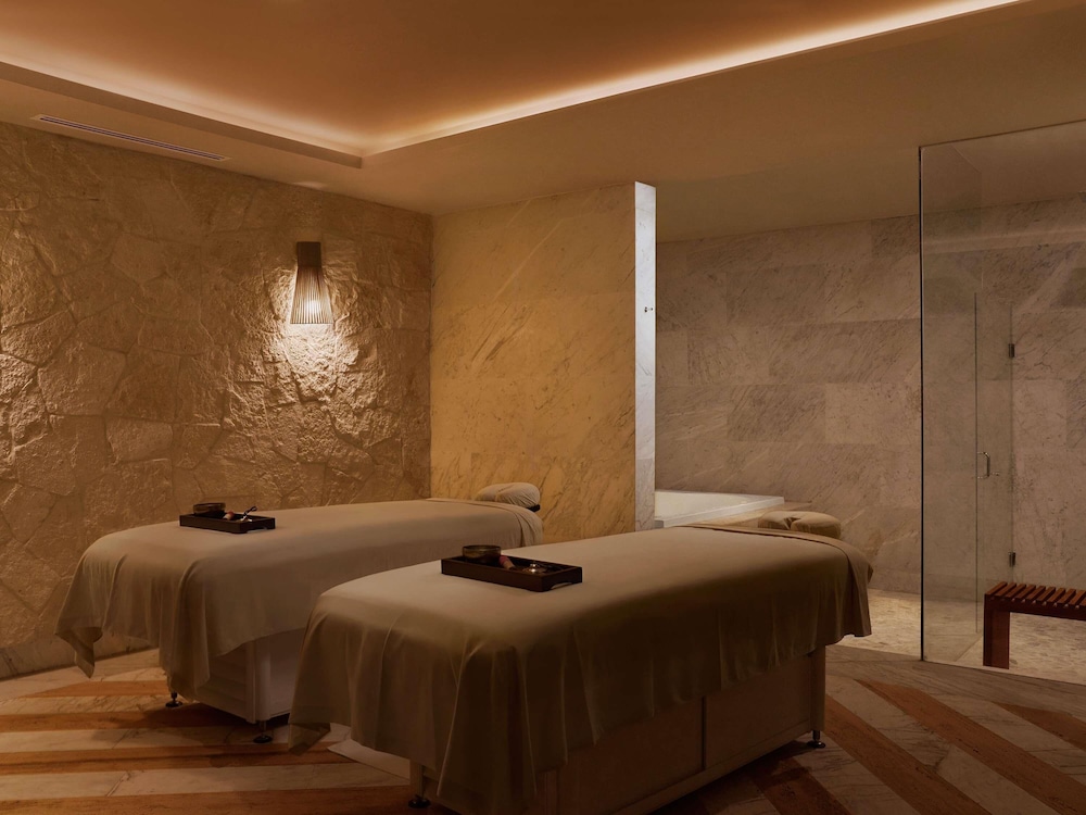 I Punta Sam-området Playa Mujeres ligger SLS Playa Mujeres – ALL Inclusive Collection en kvarts bilfärd från både Ultramar färja Puerto Juárez och Plaza Las Américas. Detta boende med all-inclusive ligger 15,2 km från Playa Langosta och 17,1 km från Playa Tortuga. Känn dig som hemma i ett av de 498 luftkonditionerade rummen med gratis produkter i minibar och espressobryggare. Gratis wi-fi ser till att du kan hålla dig uppkopplad, och en 42-tums smart-tv med kabelkanaler erbjuder all underhållning du behöver. Badrum med dusch, regndusch och hårtorkar. På rummet finns telefon, värdeförvaringsskåp och skrivbord. Avstånd avrundas till närmsta decimal.